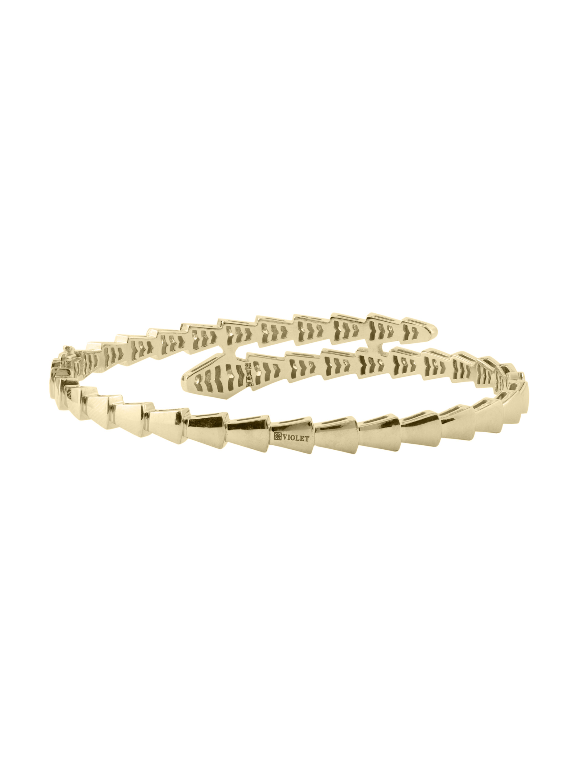 Роскошный браслет из коллекции De Luxe — Серпенти воплощает в себе грацию и природную эстетику. Это ювелирное изделие выполнено в эффектном дизайне в виде скорпиона, чьи изгибы плавно очерчивают запястье, создавая динамичный и выразительный образ. Модель изготовлена из лимонного золота 585 пробы, чей теплый благородный оттенок подчеркивает эксклюзивность работы.