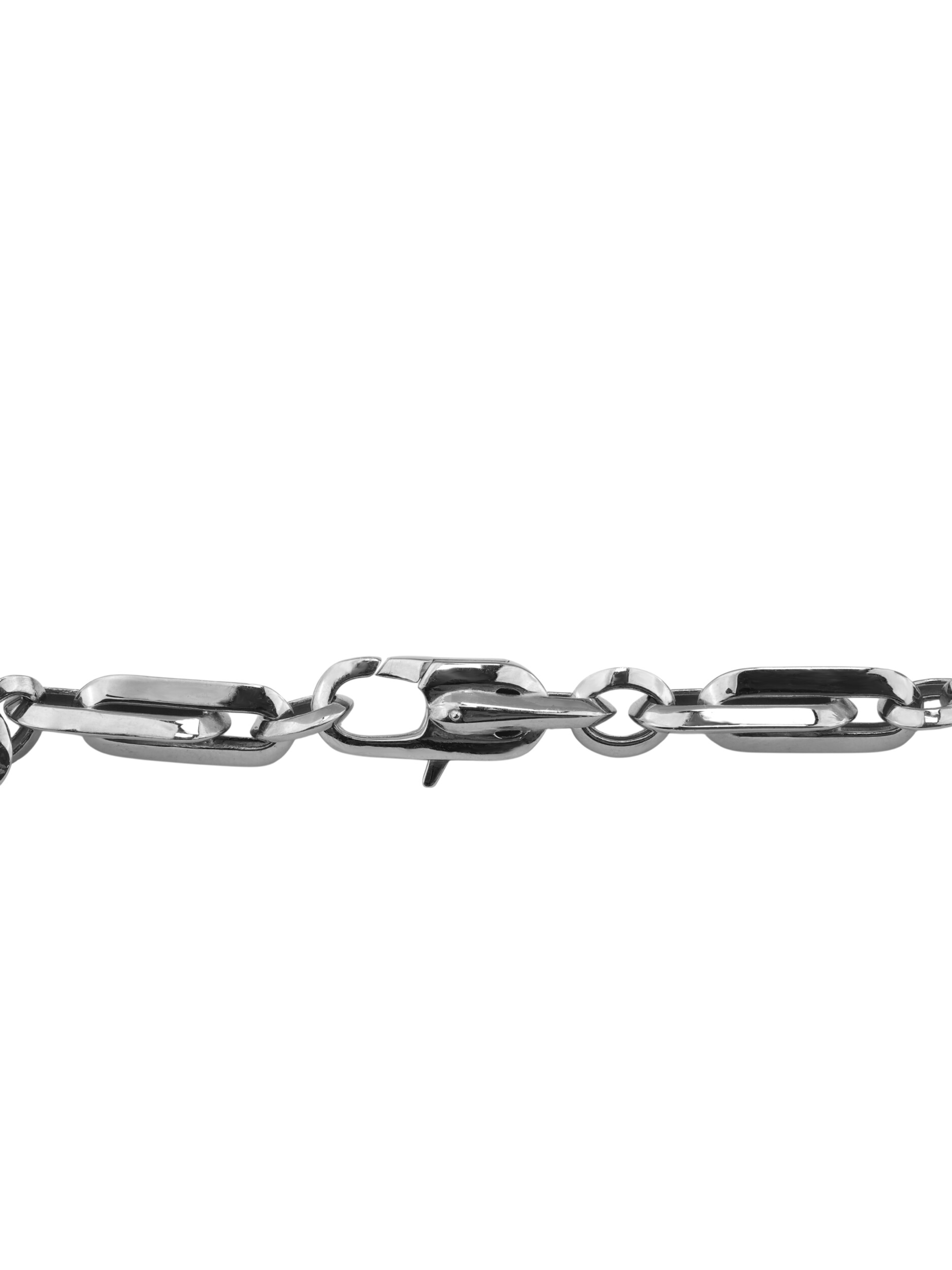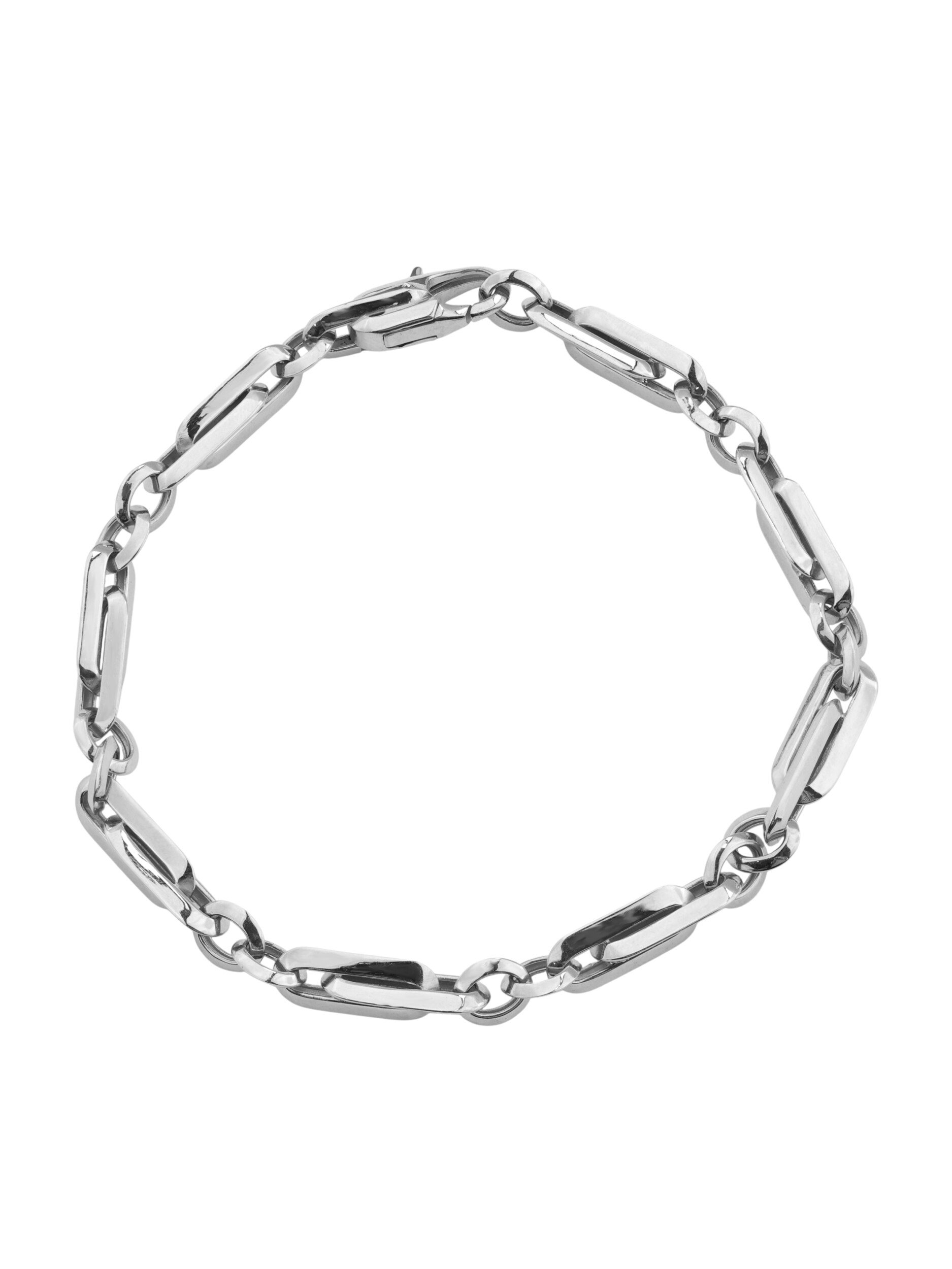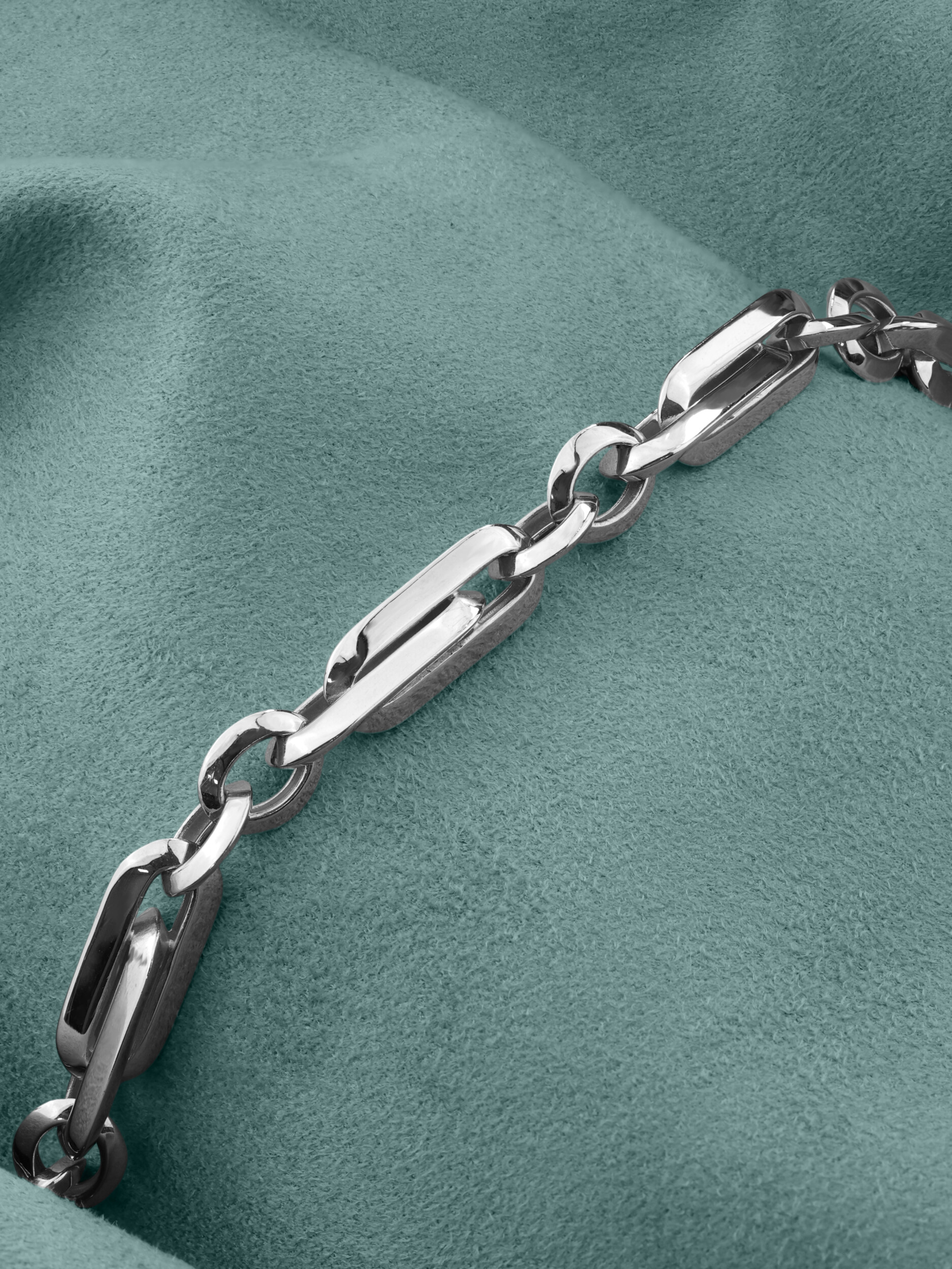 Данная модель выполнена в виде цепочного плетения, которое выглядит эффектно и самодостаточно. Благодаря универсальному дизайну, такой браслет идеально подойдет как для мужчин, так и для женщин, легко вписываясь в деловой костюм или повседневный гардероб. Гладкие, тщательно отполированные звенья приятно ощущаются на запястье, обеспечивая комфорт при ежедневной носке.