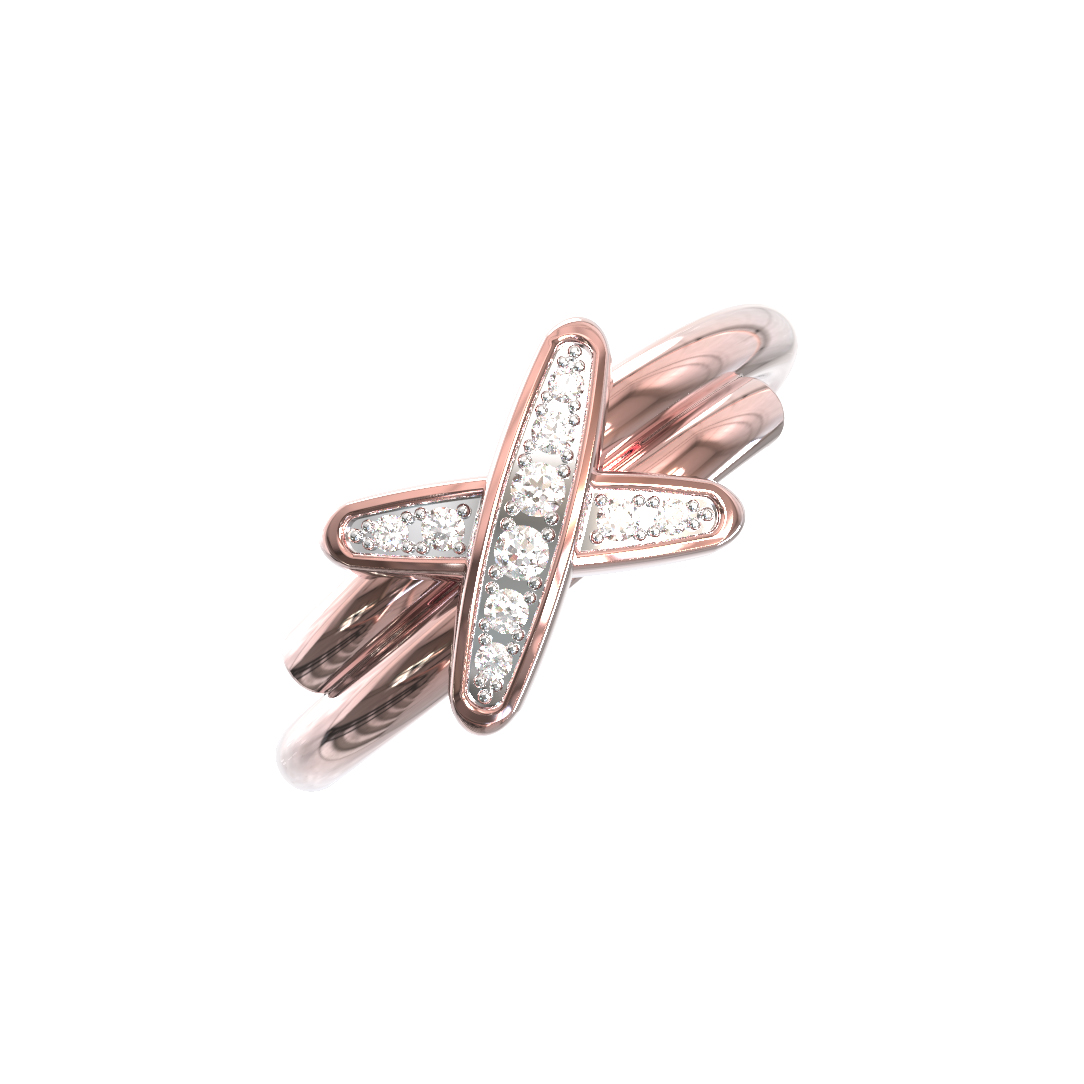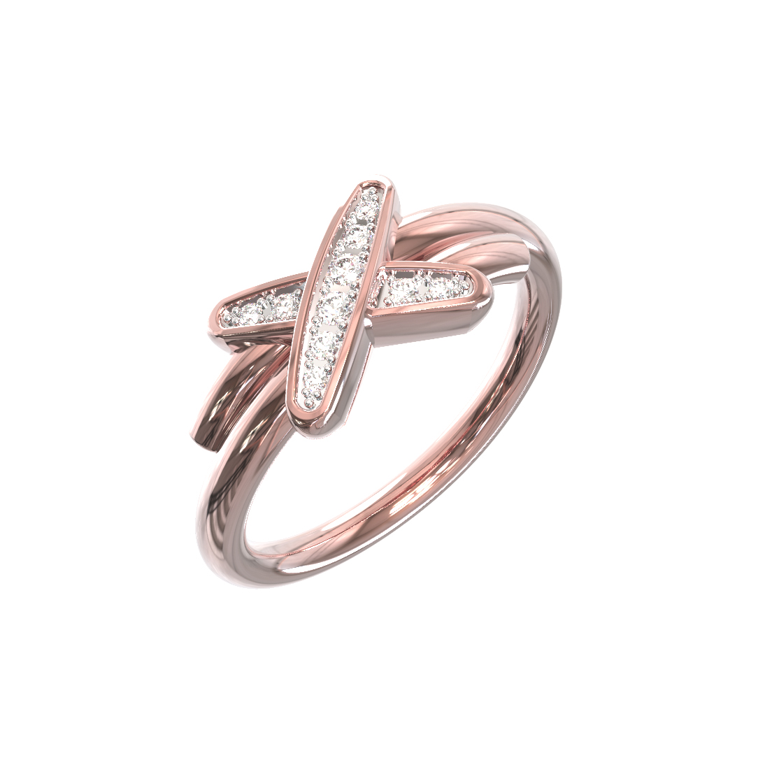 Изделие выполнено из розового золота 585 пробы. Тщательная полировка поверхности придает металлу зеркальный блеск, который подчеркивает чистоту камней. Лаконичный, но в то же время архитектурный дизайн делает это кольцо универсальным аксессуаром. Оно создано для тех, кто ценит эстетику и качество в каждой детали.