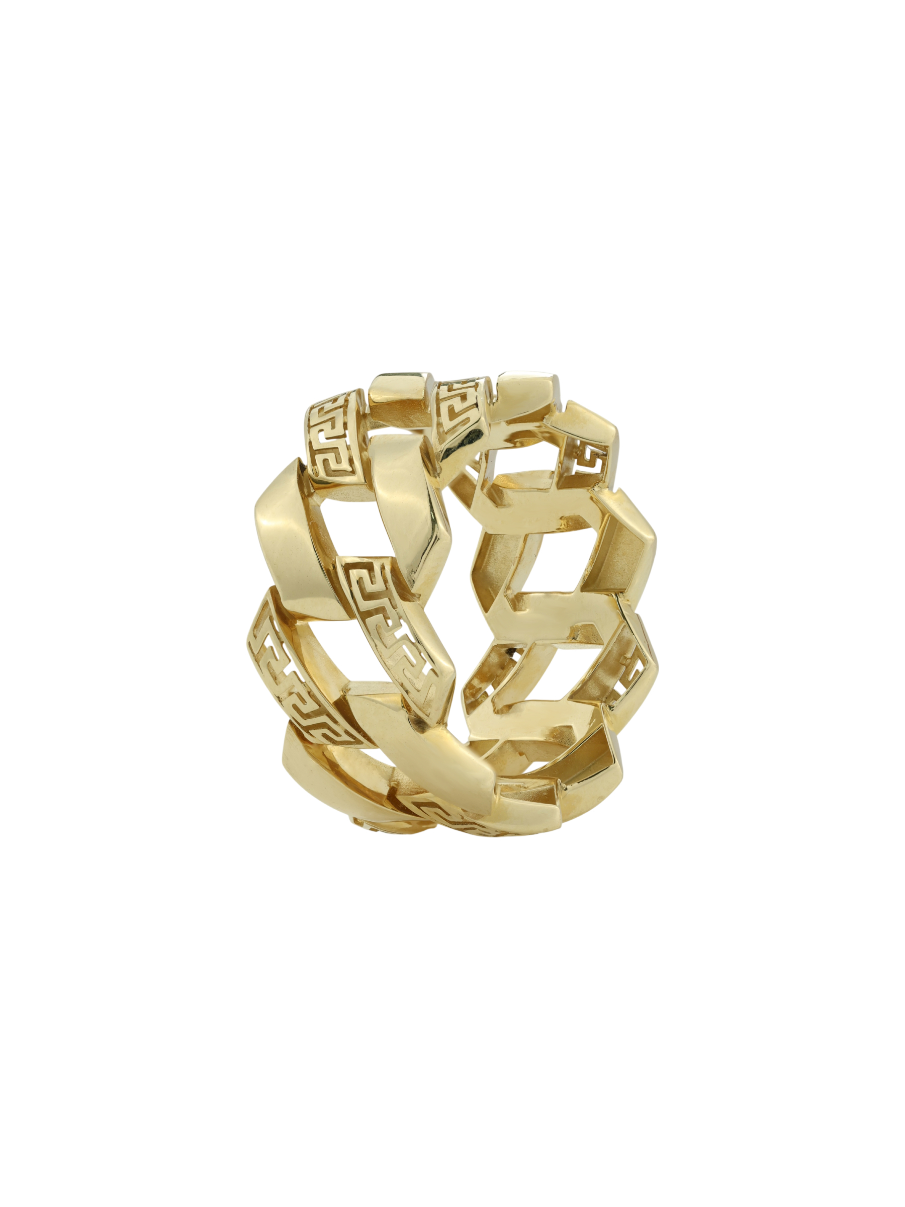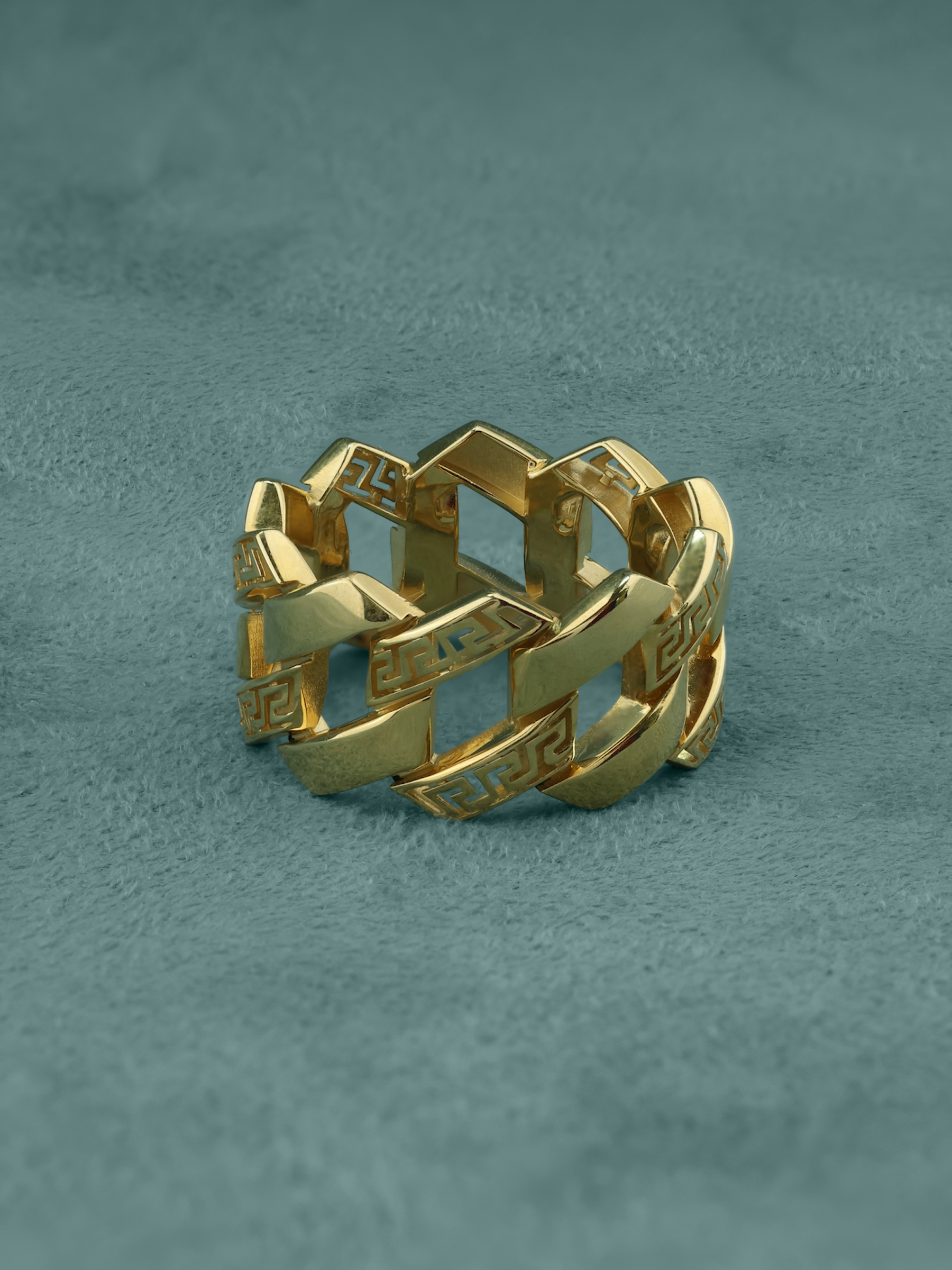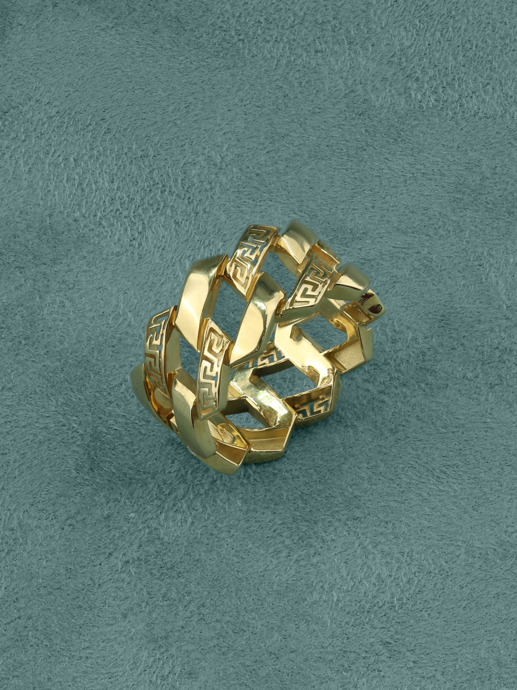 Массивный, но при этом гармоничный силуэт изделия делает его универсальным дополнением к повседневному или вечернему образу. Это кольцо одинаково органично смотрится как на женской, так и на мужской руке, подчеркивая статус и тонкий вкус своего владельца. Лимонный оттенок золота придает украшению свежий и стильный вид, выгодно отличая его от классических моделей. Каждая деталь тщательно проработана, создавая динамичную и объемную композицию, которая великолепно играет со светом при каждом движении.