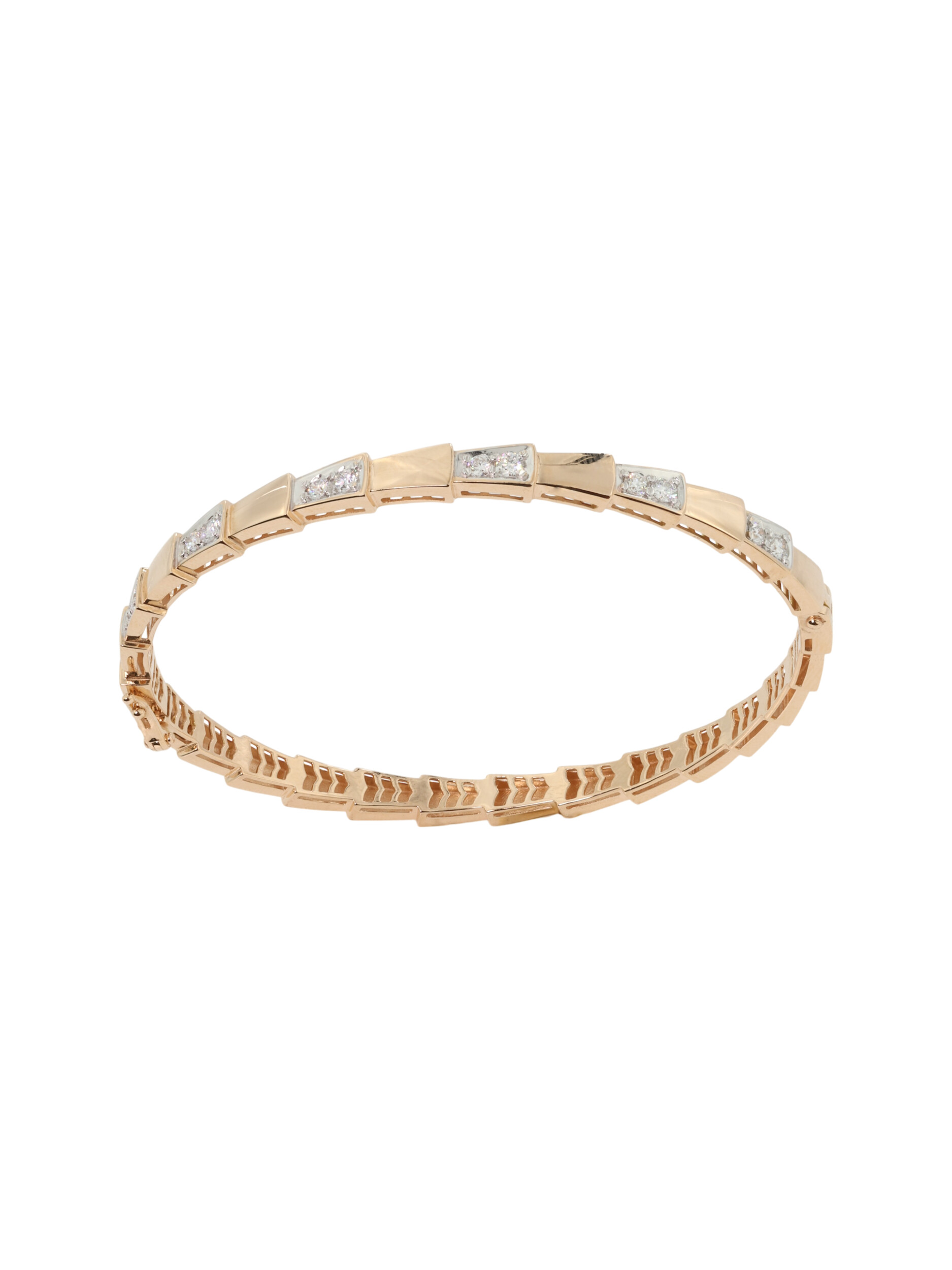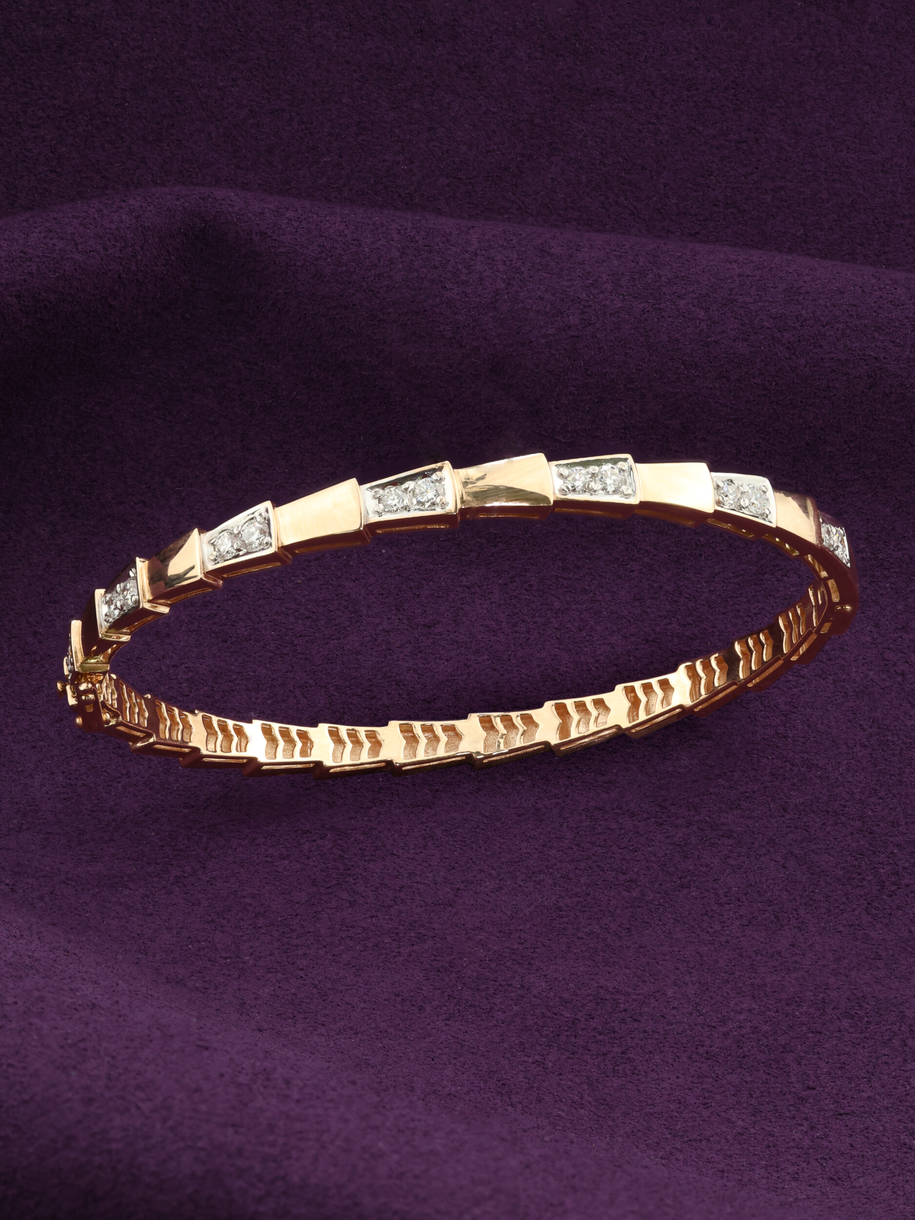 Роскошный браслет из красного золота 585 пробы станет центральным элементом вашего образа, подчеркивая безупречный вкус и статус. Это украшение из коллекции De Luxe — Серпенти привлекает внимание своим необычным дизайном, вдохновленным образом скорпиона. Геометричная структура звеньев имитирует гибкость и стремительность, создавая эффект динамичного движения на запястье. Теплый оттенок красного золота гармонично сочетается с холодным блеском драгоценных камней, придавая аксессуару особую выразительность.