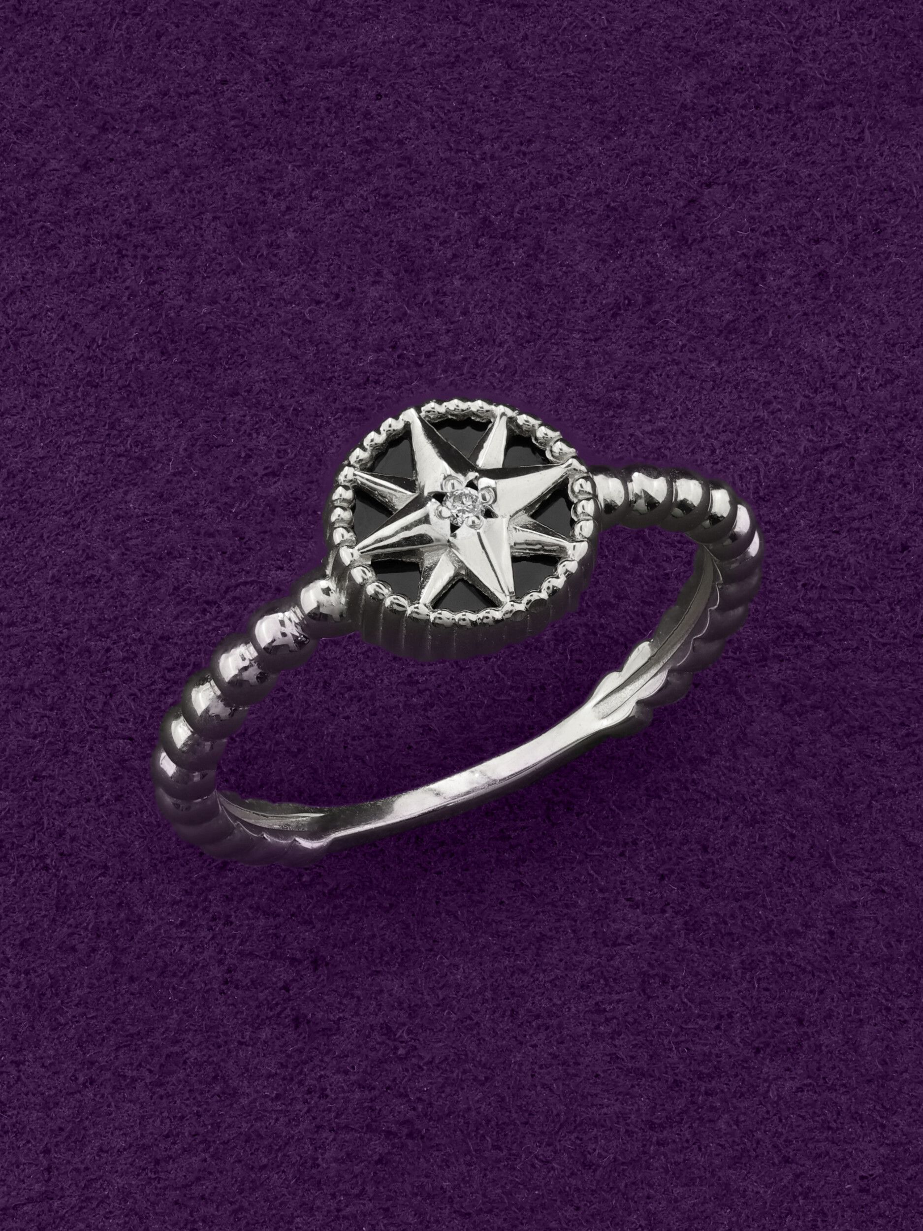 Кольцо из белого золота 585 пробы из коллекции De Luxe — Звёзды — Бриллианты станет безупречным акцентом вашего образа. Дизайн изделия вдохновлен небесной тематикой и выполнен в форме изящной звезды. Мастерское сочетание материалов создает выразительный контраст: благородный блеск белого золота подчеркивается глубоким черным цветом оникса и искристым сиянием бриллианта. Две вставки круглой формы гармонично дополняют центральную композицию.