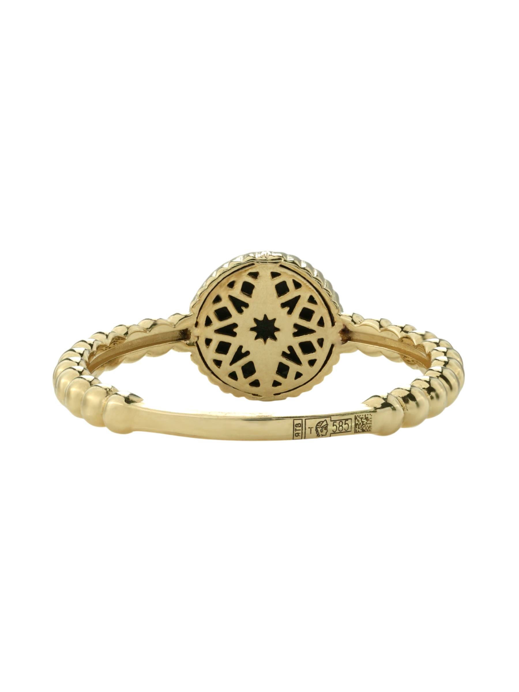 Это кольцо из коллекции De Luxe — Звёзды — Бриллианты отличается изысканным исполнением. Гладкая, фактурная шинка и декоративная оправа вокруг вставки делают изделие узнаваемым. Две вставки — бриллиант и малахит — подобраны с особым вниманием к качеству. Украшение универсально и подходит как для женщин, так и для мужчин, предпочитающих лаконичные ювелирные изделия с характером.