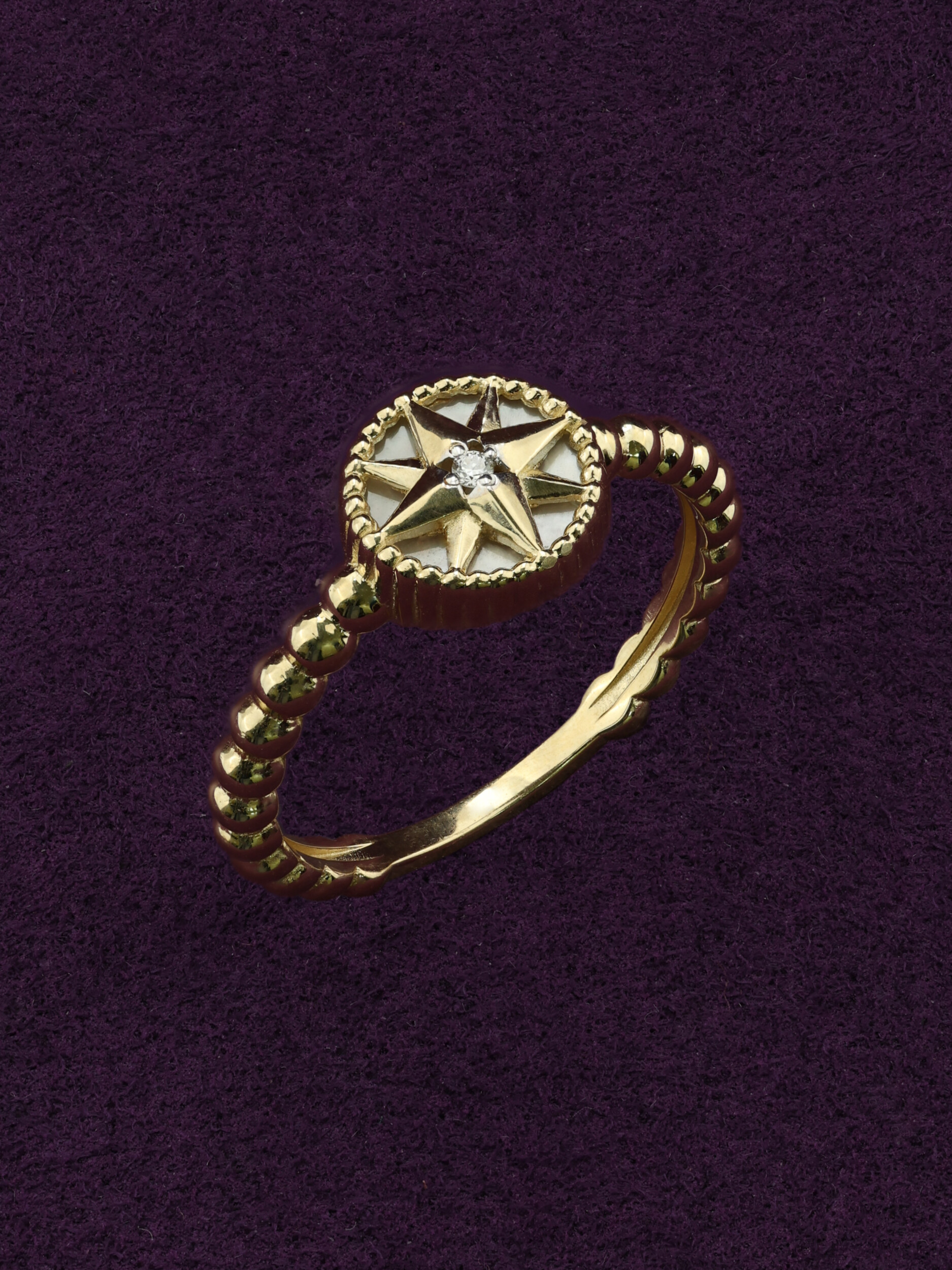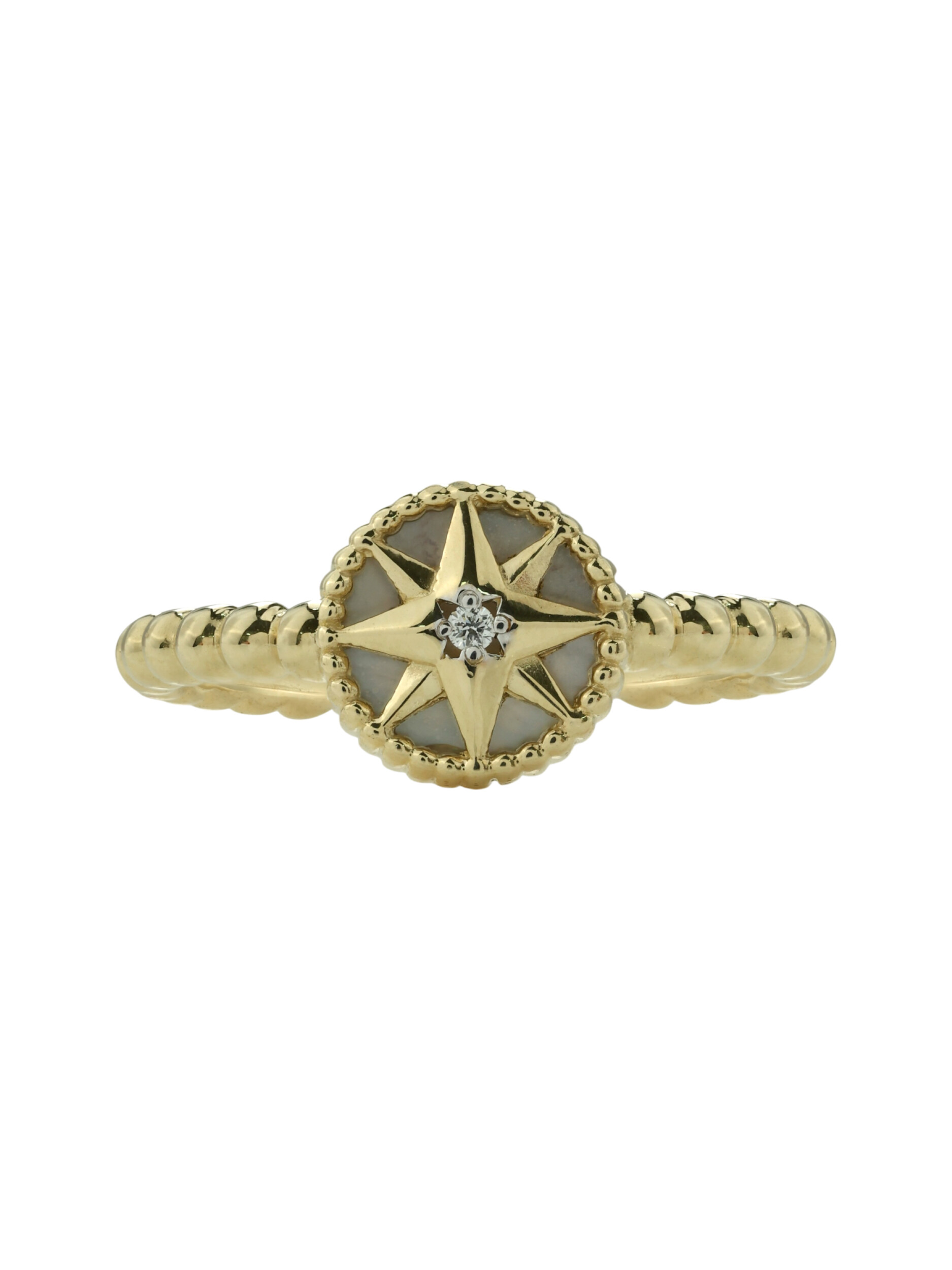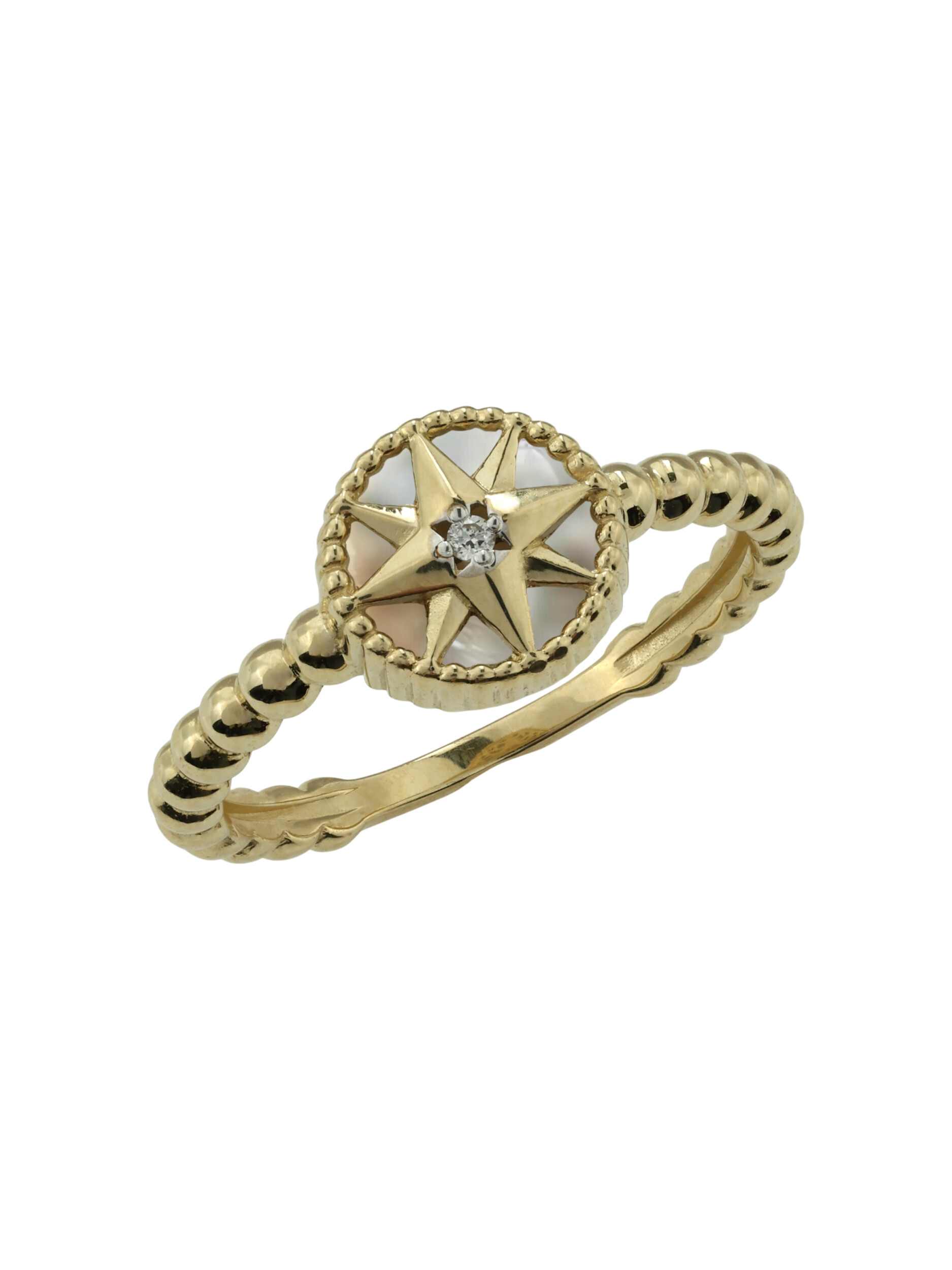 Кольцо из лимонного золота c бриллиантами и перламутром