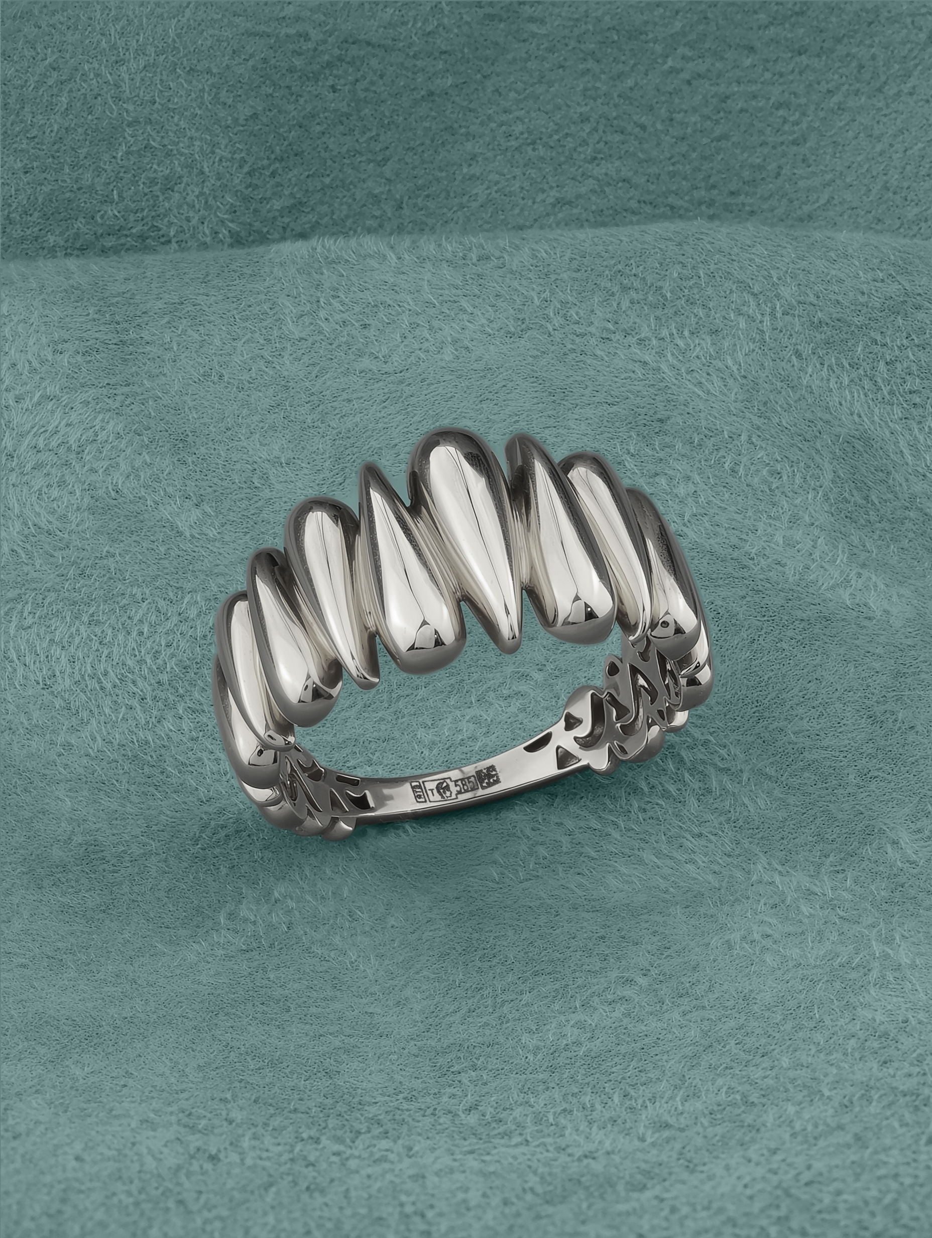 Стильное кольцо из белого золота 585 пробы из коллекции Vioretty — Transforme станет акцентным дополнением вашего образа. Дизайнеры сделали ставку на дерзкую геометрию и фактурные элементы: поверхность изделия украшают объемные шипы, которые создают эффектный контраст с благородным блеском металла. Холодный цвет материала подчеркивает строгость линий и современный характер украшения.