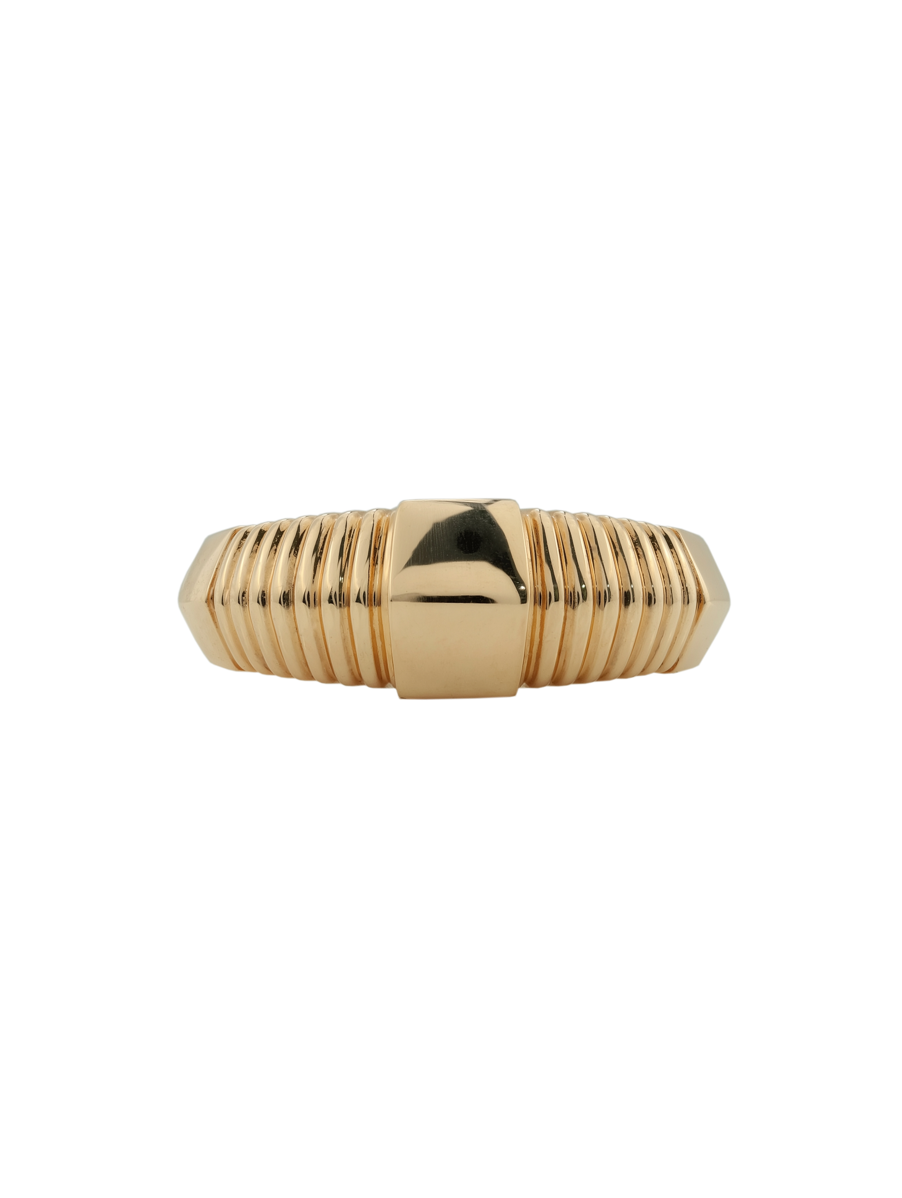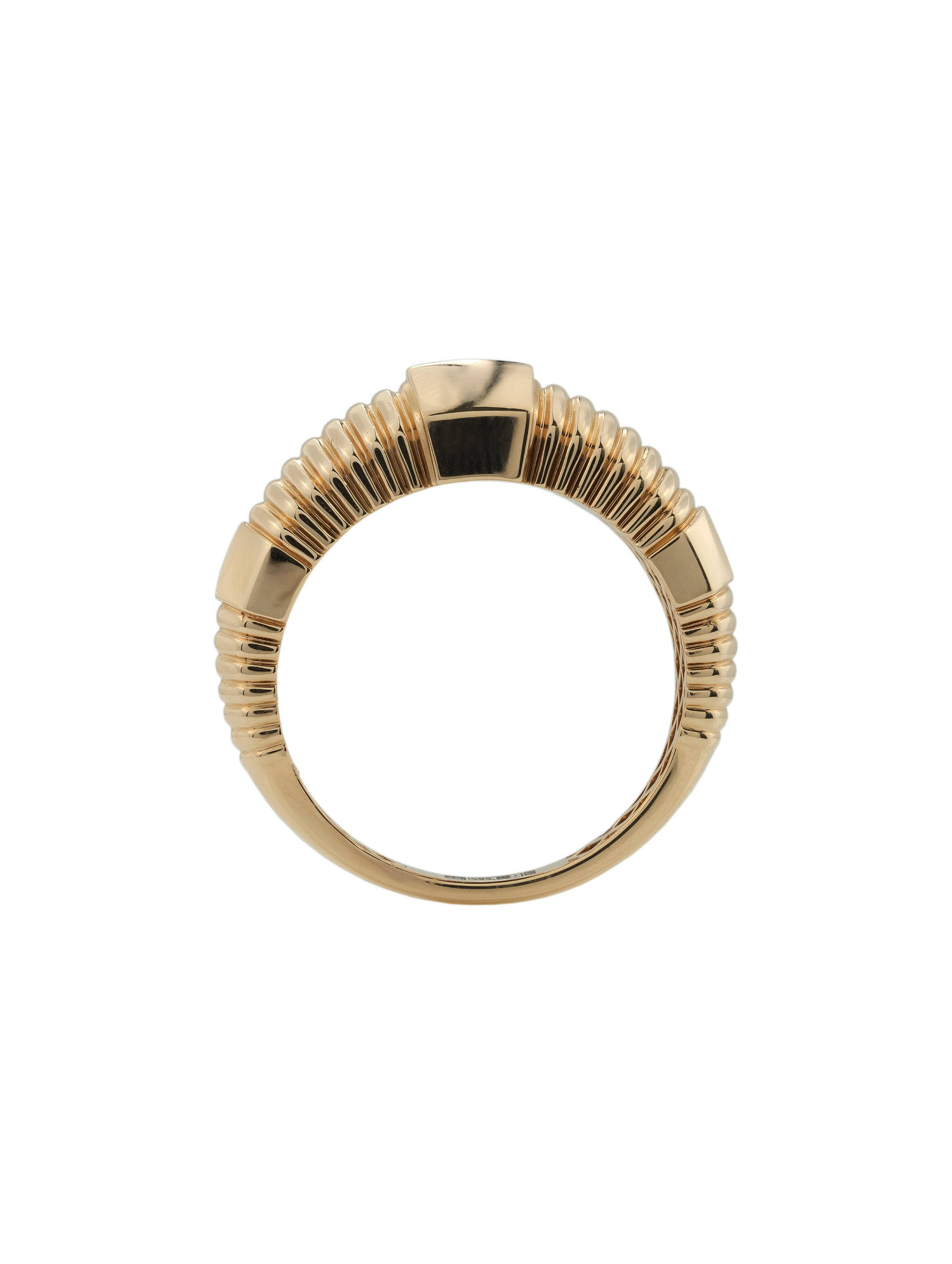 Это универсальное кольцо одинаково гармонично дополнит как женский, так и мужской образ, подчеркивая индивидуальность владельца. Теплый оттенок красного золота красиво сияет на свету, а проработанная геометрия формы обеспечивает комфортную посадку на пальце. Данное изделие прекрасно смотрится как самостоятельный аксессуар, так и в составе комплектов, позволяя создавать многослойные и современные комбинации.