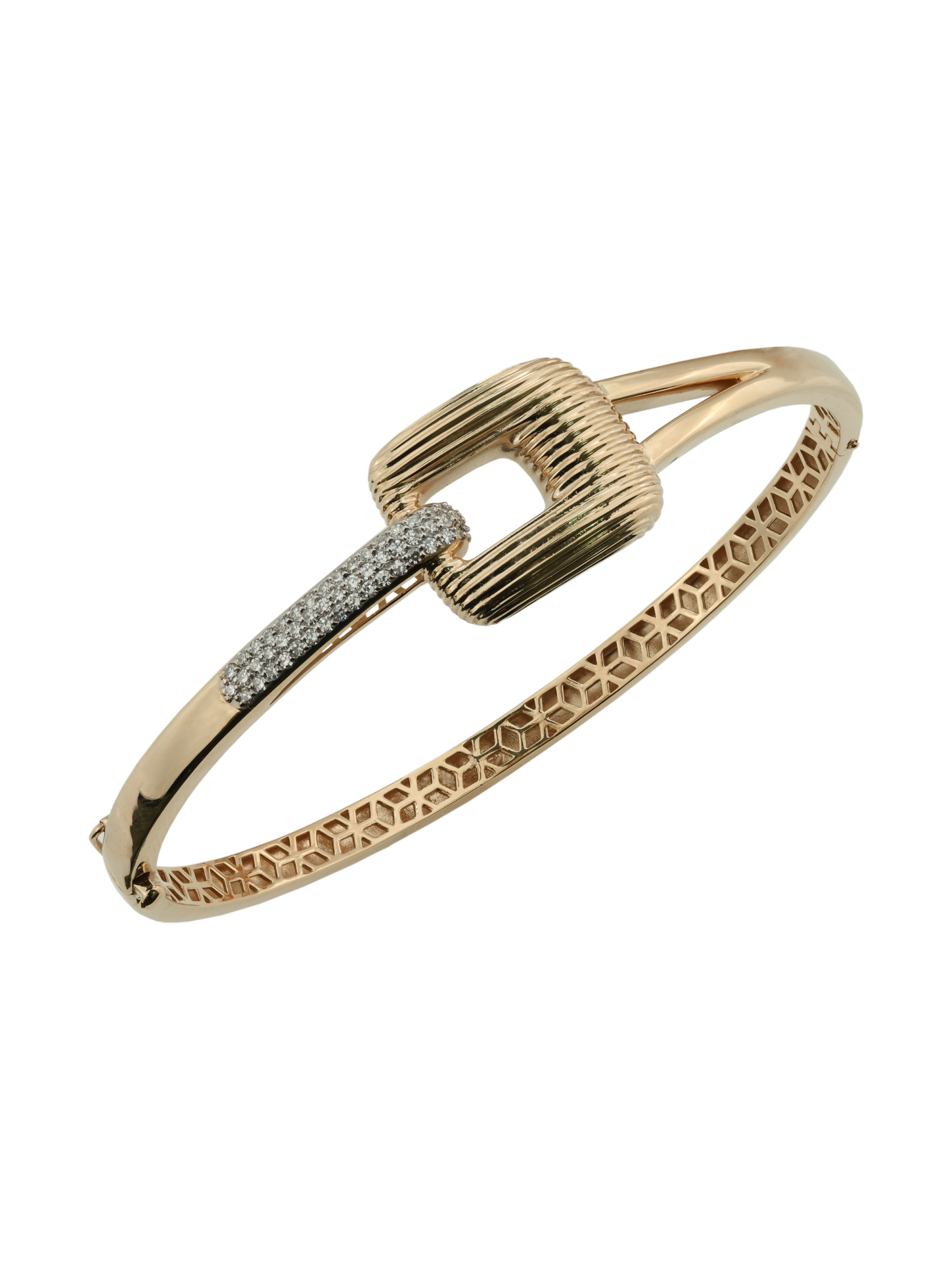 Элегантный золотой браслет — это воплощение итальянского стиля и безупречного мастерства, созданное для тех, кто ценит статус и эстетику в каждой детали. Украшение из коллекции Vioretty — Milano притягивает взгляд своей сложной геометрией и продуманным сочетанием классических материалов. В качестве основы ювелиры использовали красное золото 585 пробы, которое придает изделию теплое сияние и обеспечивает долговечность.