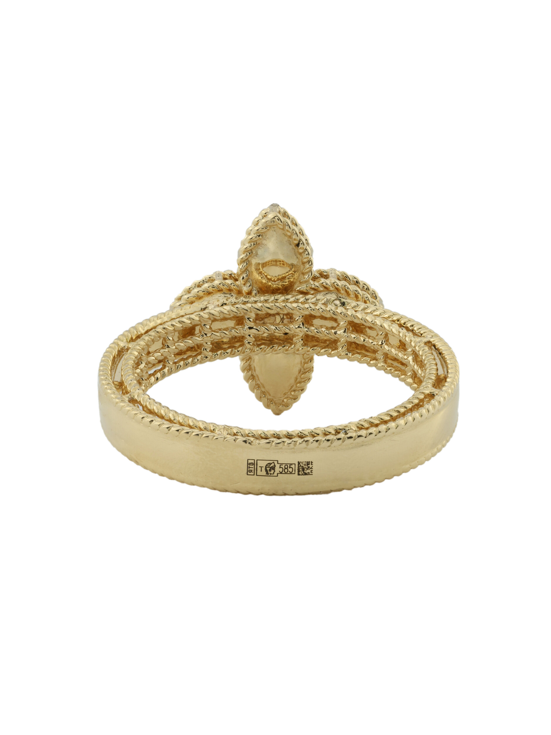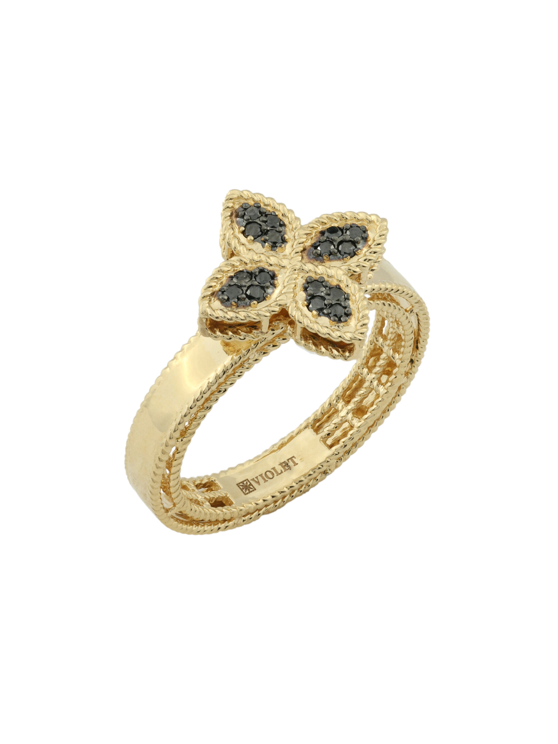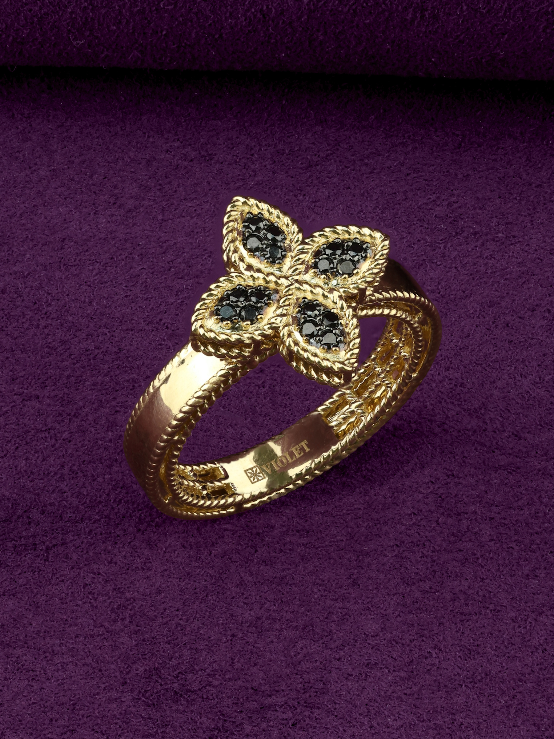 Элегантное кольцо из коллекции De Luxe — Венецианская принцесса станет достойным украшением как для женщин, так и для мужчин, предпочитающих утонченные аксессуары с глубоким смыслом. Основой изделия служит благородное лимонное золото 585 пробы, чей теплый солнечный оттенок идеально гармонирует с контрастными вставками. Дизайн в форме клевера — извечного символа удачи и процветания — придает украшению особую эстетическую привлекательность и узнаваемость.