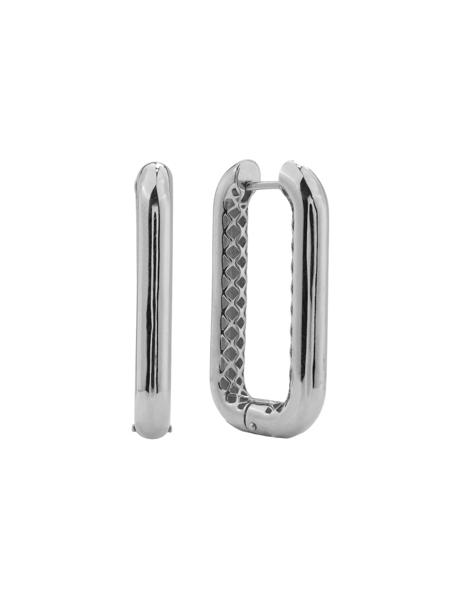 Для создания данных серег использовано качественное белое золото 585 пробы. Нейтральный и стильный белый цвет материала позволяет легко сочетать эти украшения с повседневными и вечерними комплектами. Это универсальная модель, которая одинаково гармонично подходит как для женщин, так и для мужчин, ценящих минимализм и геометрические формы. Удобная конструкция обеспечивает комфортную посадку, что делает их идеальными для ежедневного ношения.