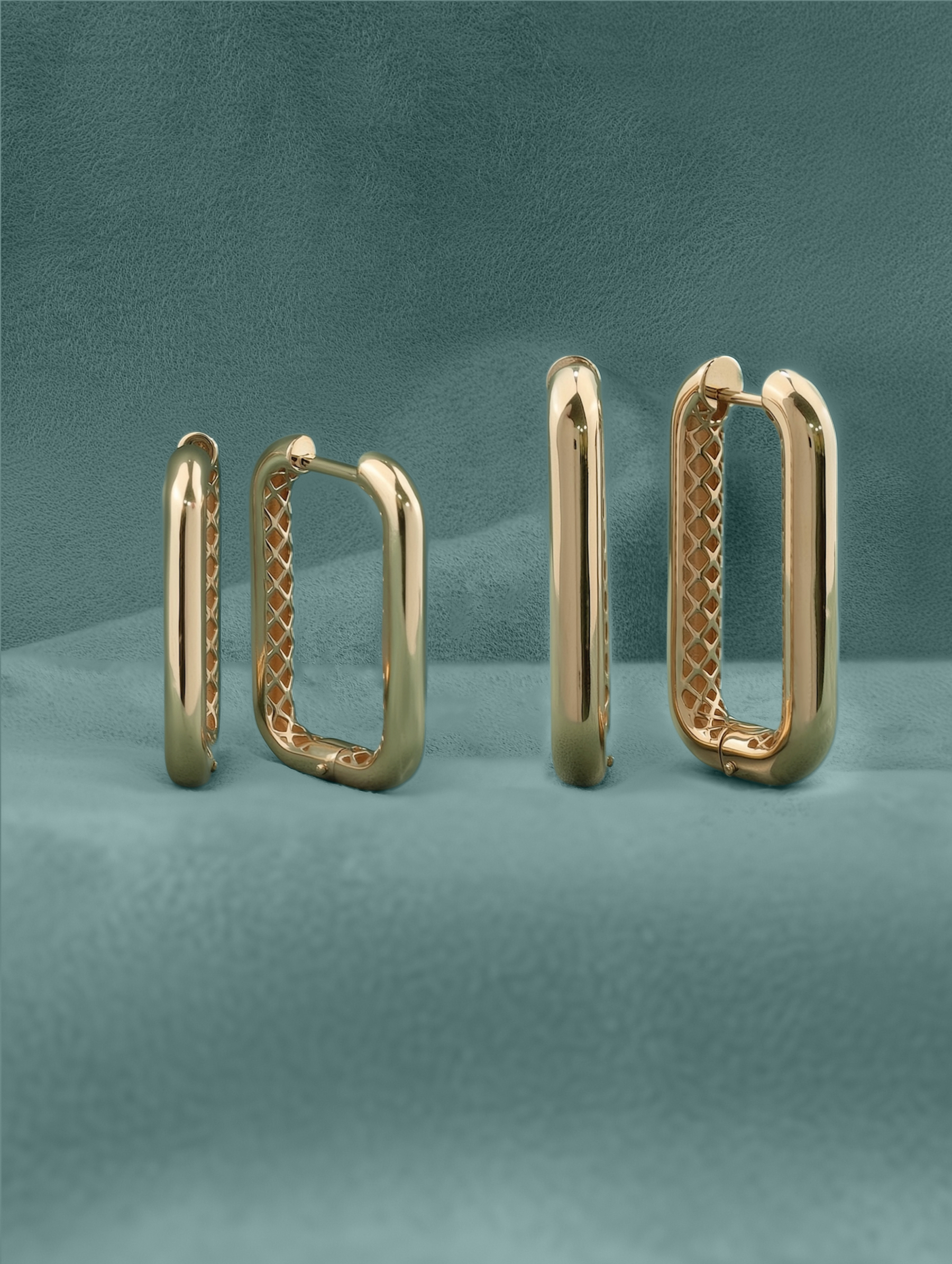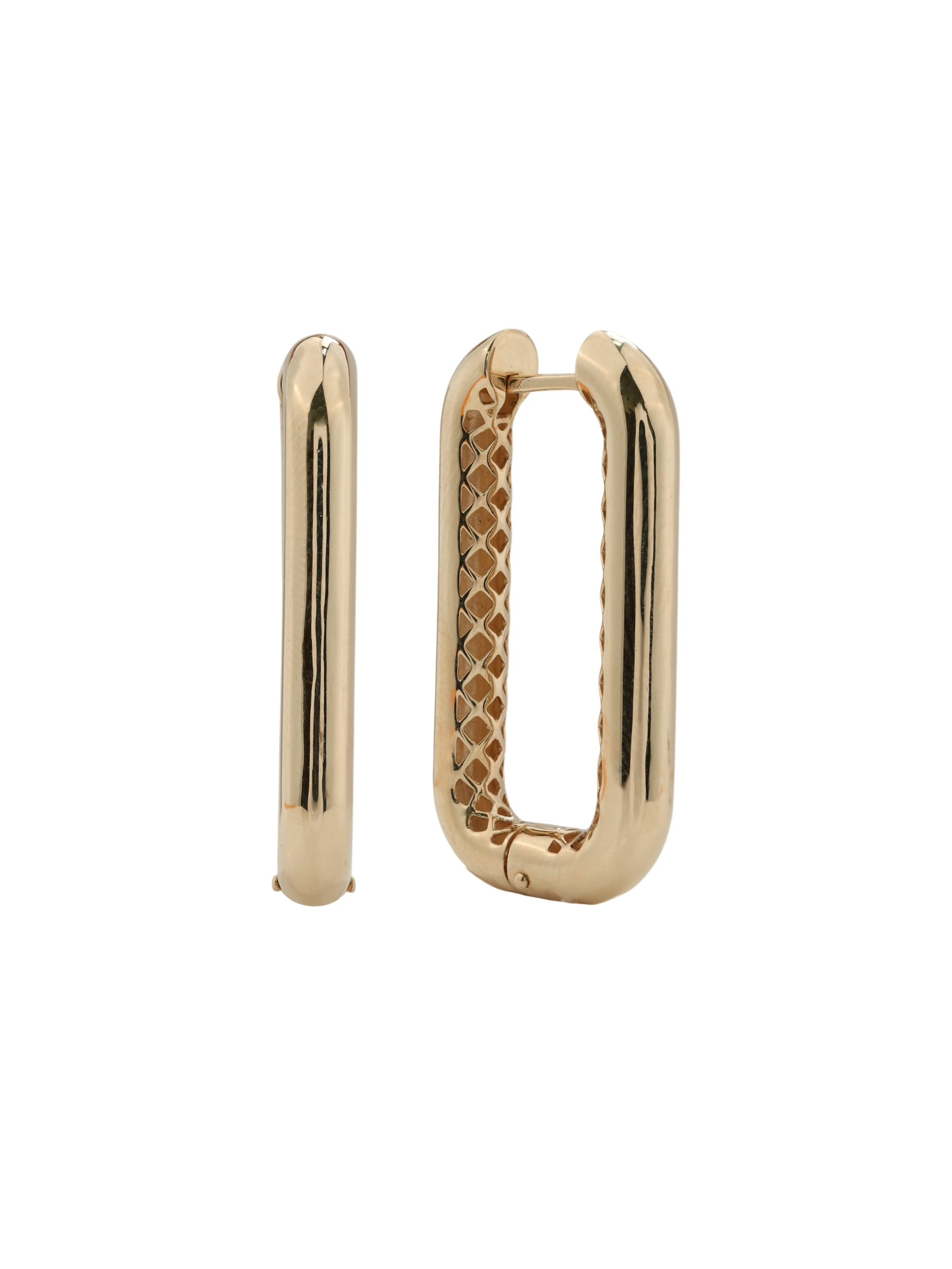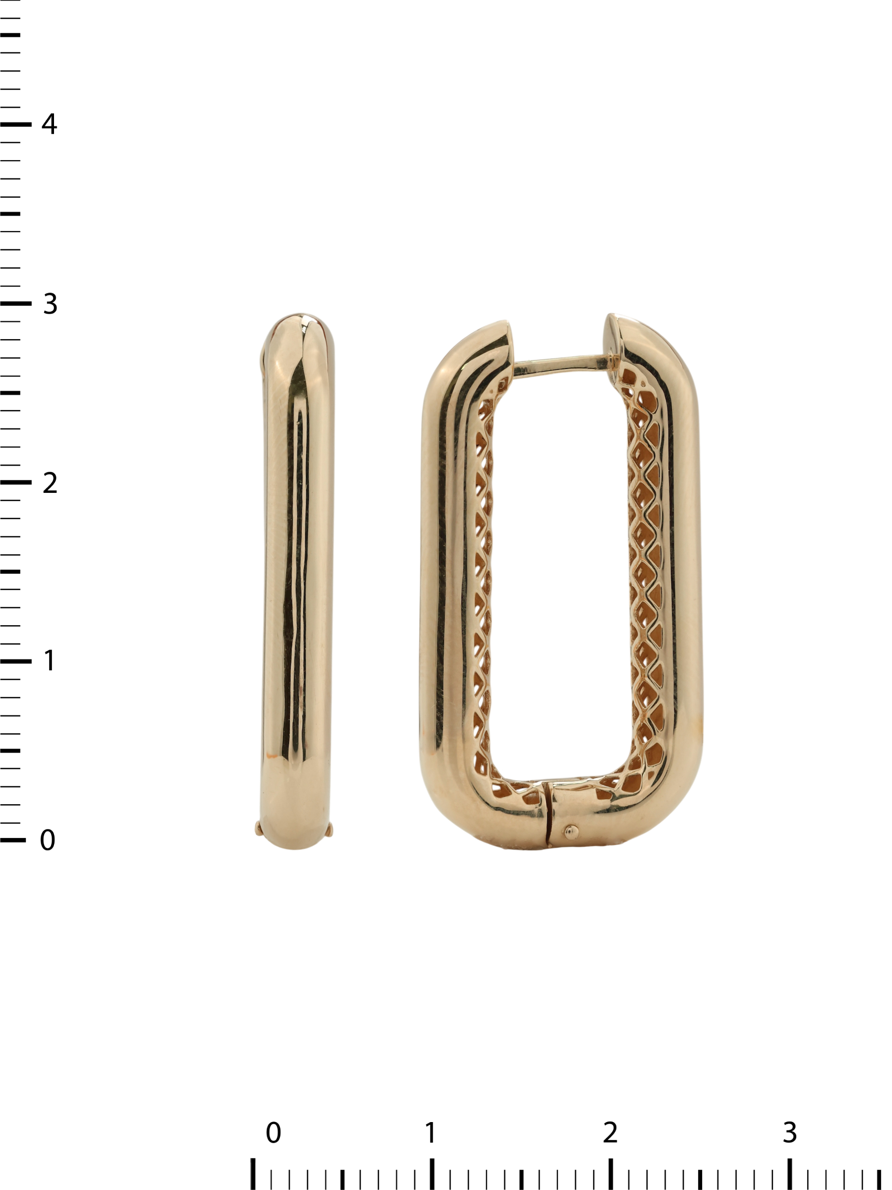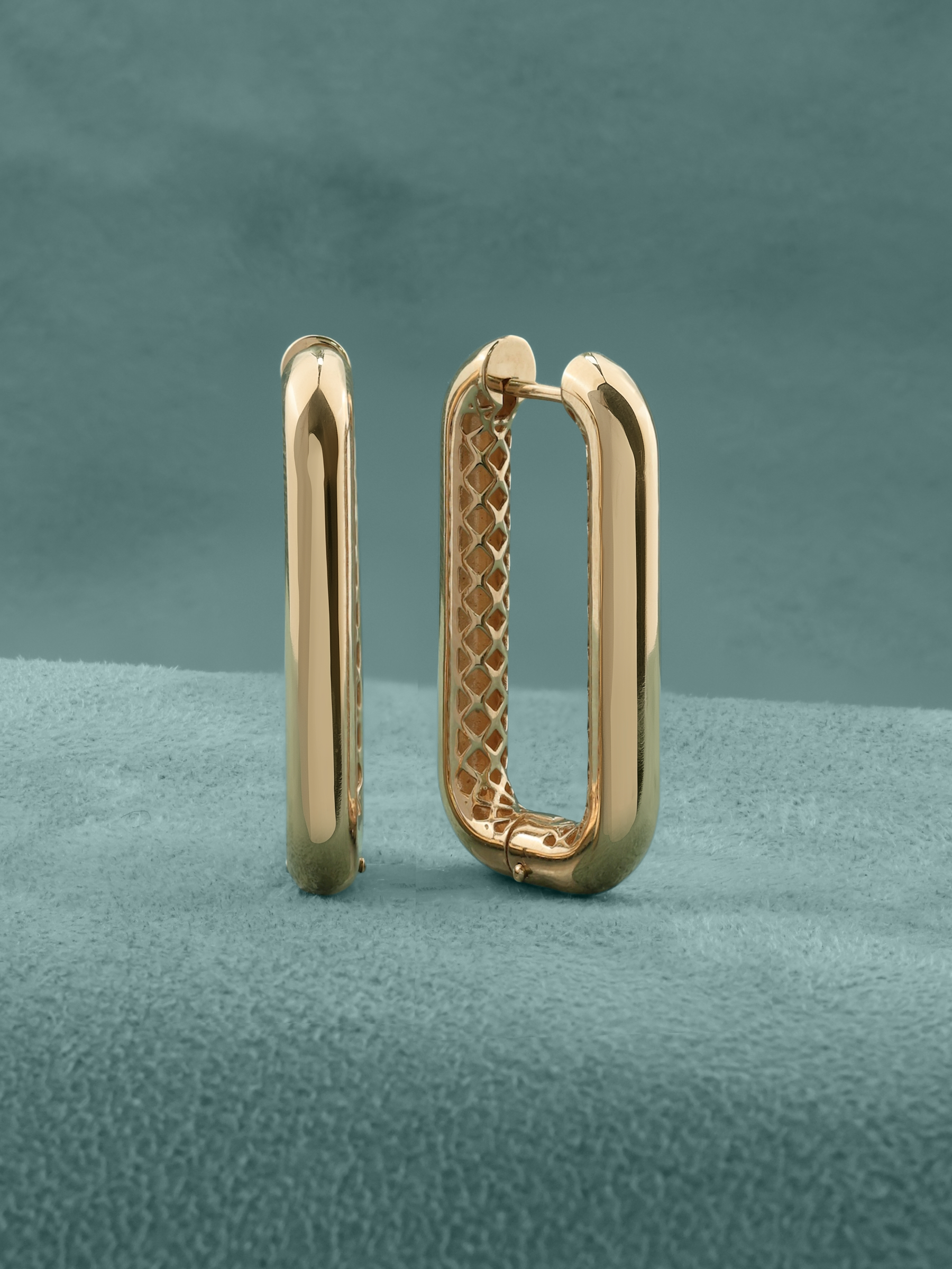 Серьги выполнены из высококачественного красного золота 585 пробы. Благородный теплый оттенок металла идеально подчеркивает сияние полированной поверхности. Особенностью дизайна является сетчатый узор на внутренней стороне изделия, который добавляет глубину и утонченность классической форме конго. Такое исполнение делает серьги универсальным аксессуаром, который одинаково гармонично дополнит как повседневный, так и вечерний гардероб.