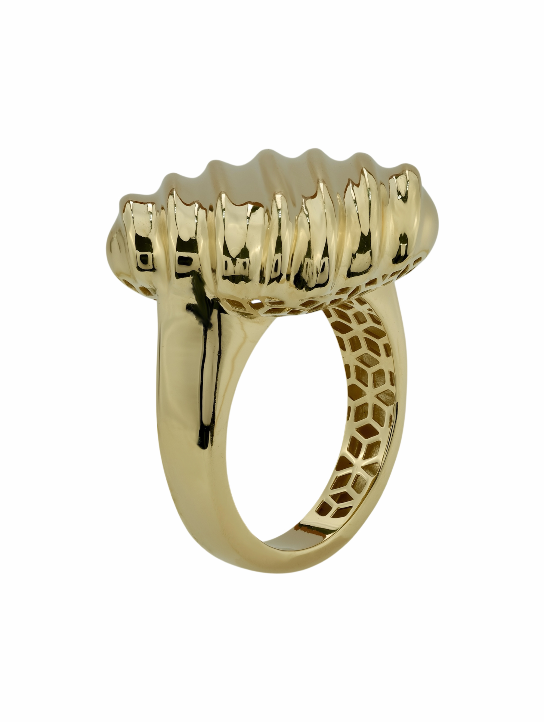 Эффектное кольцо из лимонного золота станет центральным акцентом вашего образа. Дизайн украшения, выполненный в стиле геометрия, притягивает взгляд своей ритмичной, волнообразной формой, которая создает выразительную игру света на полированной поверхности металла. Изделие, вошедшее в коллекцию Vioretty — Geometria, отличается продуманным объемом и благородным оттенком лимонного золота 585 пробы.