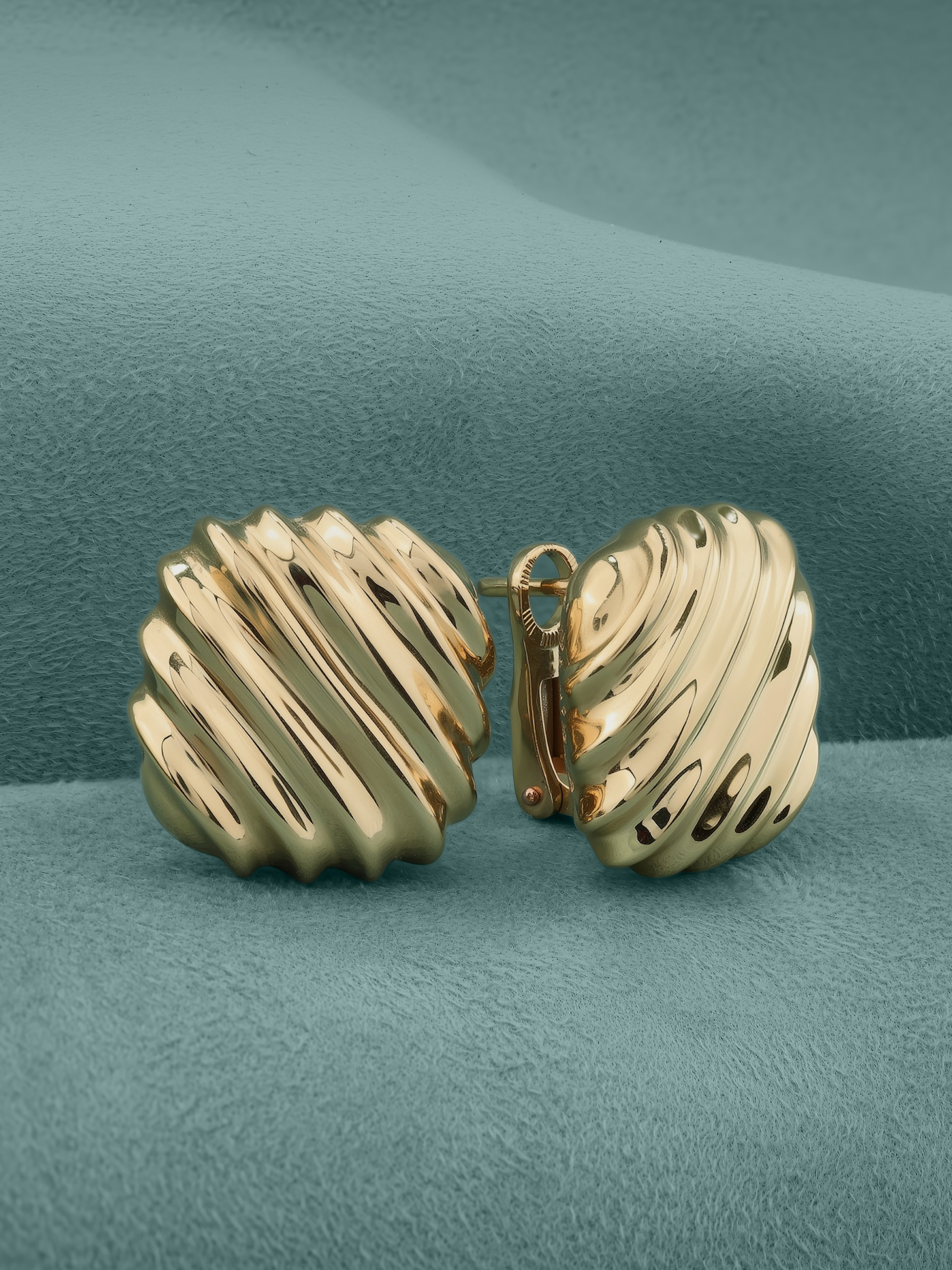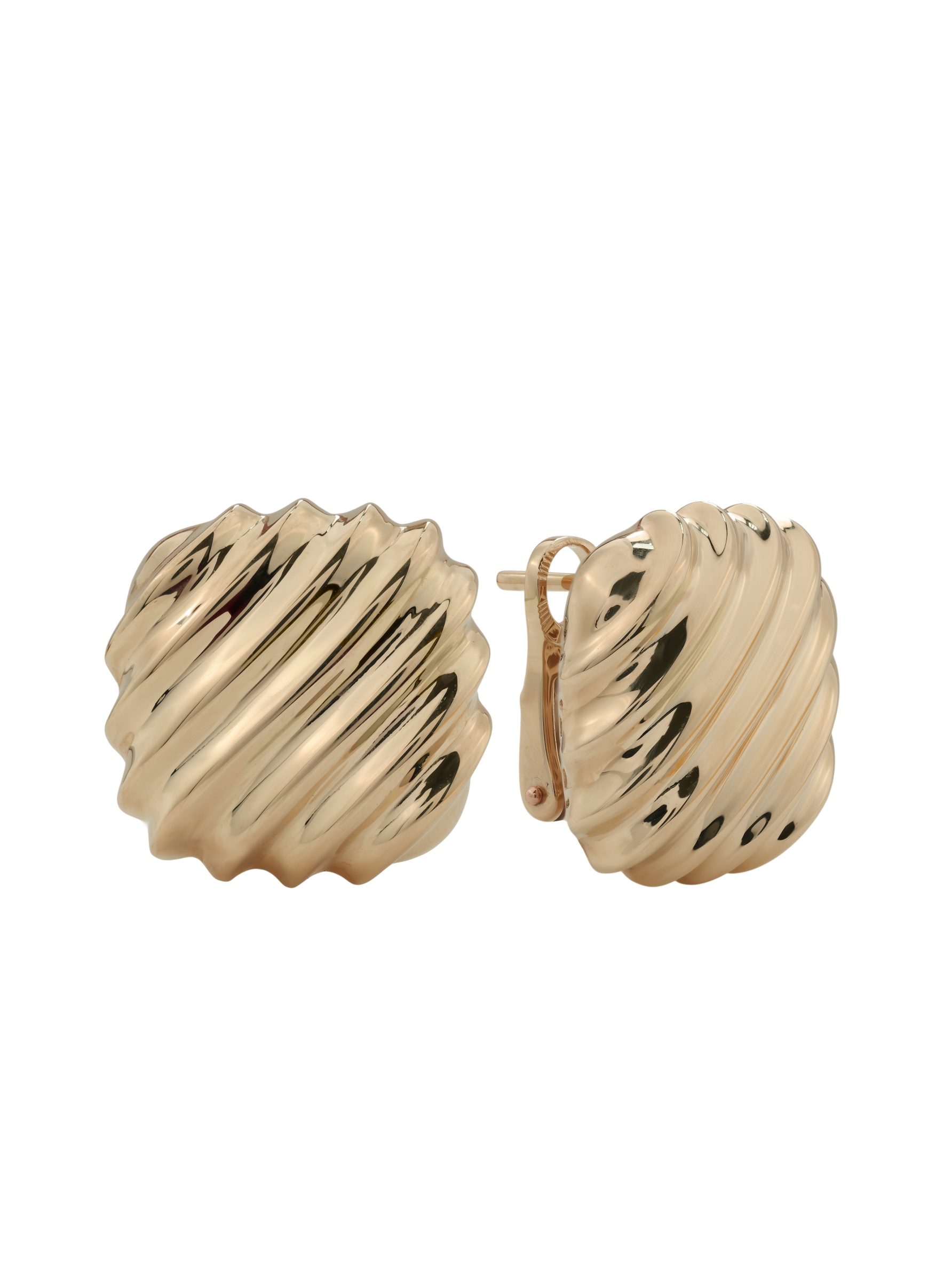 Элегантные серьги из золота представляют собой воплощение актуальных трендов и классического ювелирного мастерства. Модель выполнена из красного золота 585 пробы, что обеспечивает благородный оттенок и долговечность изделия. Дизайн украшения, вдохновленный эстетикой геометрии, привлекает внимание своей лаконичной, но выразительной формой. Рельефные линии создают динамичную игру света на поверхности металла, придавая серьгам особую глубину и объем.