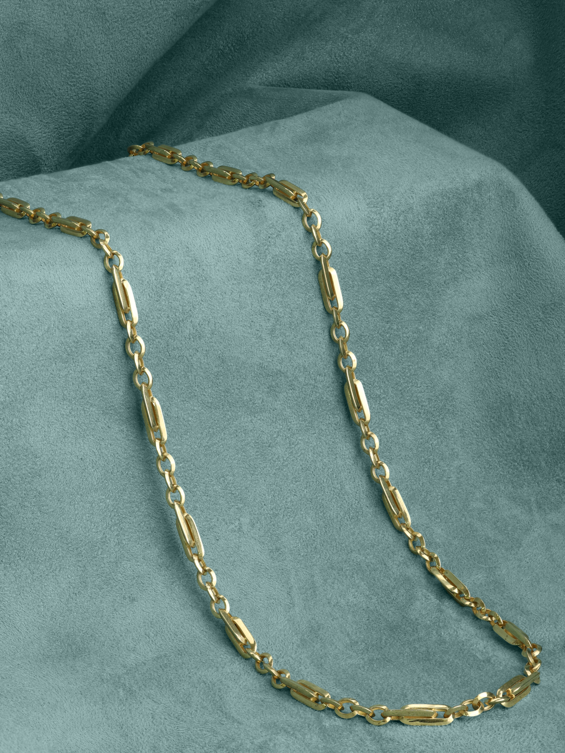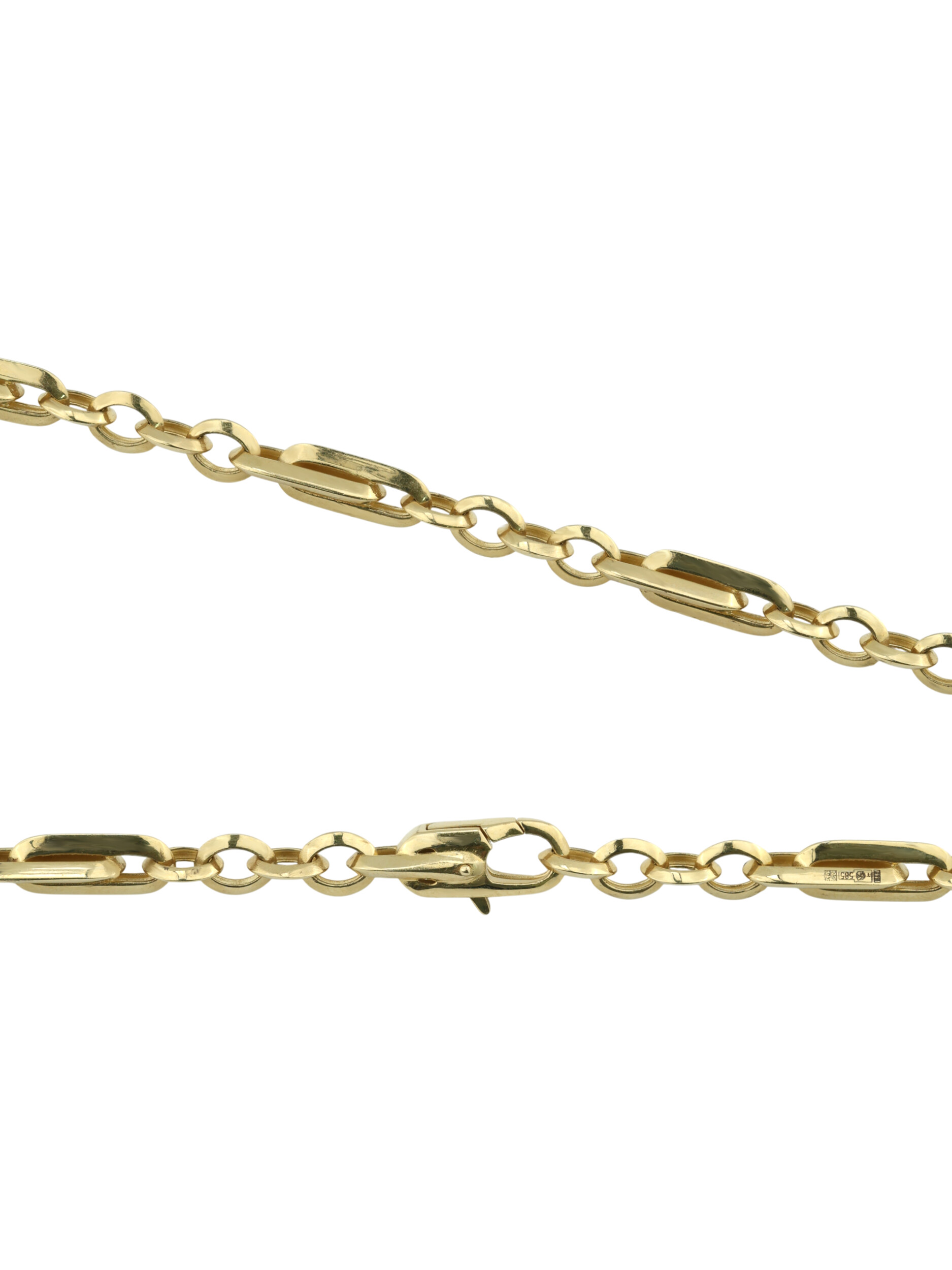 Цепь из лимонного золота станет безупречным дополнением вашего образа, подчеркивая статус и тонкий вкус. Это изделие, выполненное в изысканном итальянском стиле, воплощает собой сочетание лаконичности и ювелирного мастерства. Уникальное плетение, чередующее выразительные звенья, создает динамичный и притягательный вид, который органично вписывается как в повседневный гардероб, так и в вечерние аутфиты.