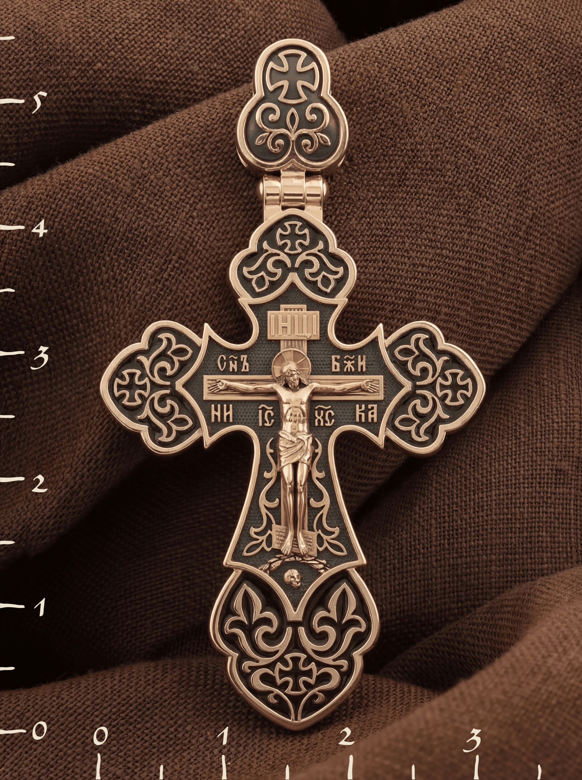 Крест с рельефным изображением Распятия в окружении пышных цветов и ажурного узора, напоминает нам о красоте Райского сада. Такой крест вводит мотив процветшего креста и ассоциируется с образом райского Древа Жизни. Как через древо познания пришла смерть, так через Крест Христа — «Древо Жизни» — даровано спасение.