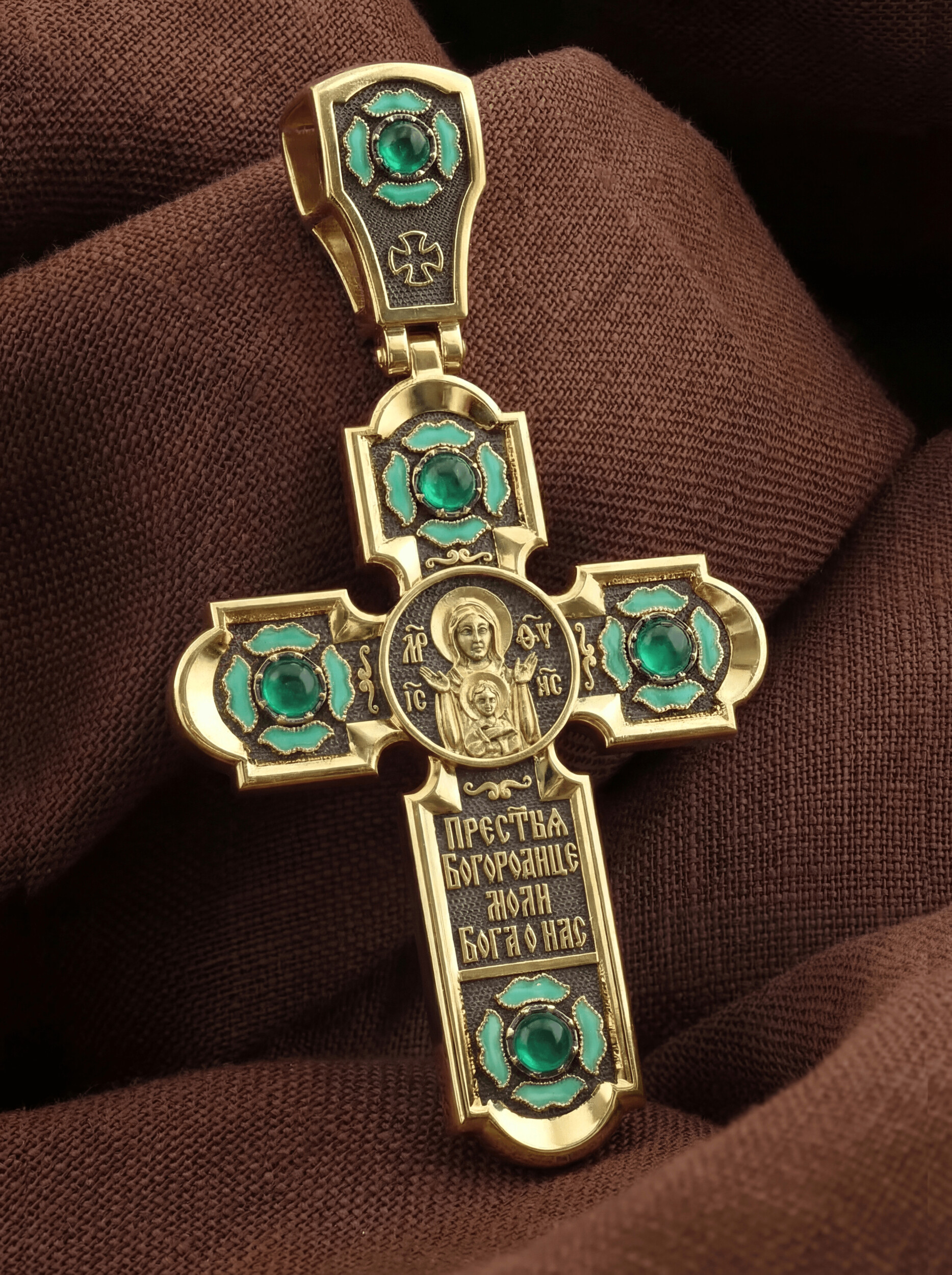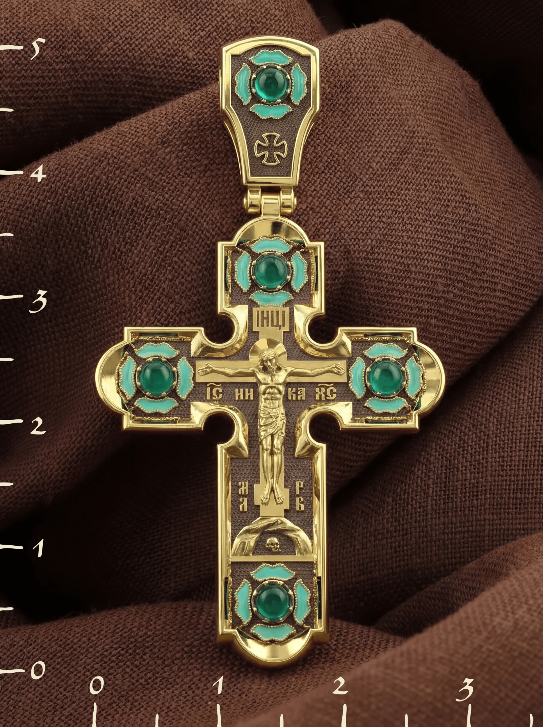 Крест из лимонного золота c эмалью и хризопразом