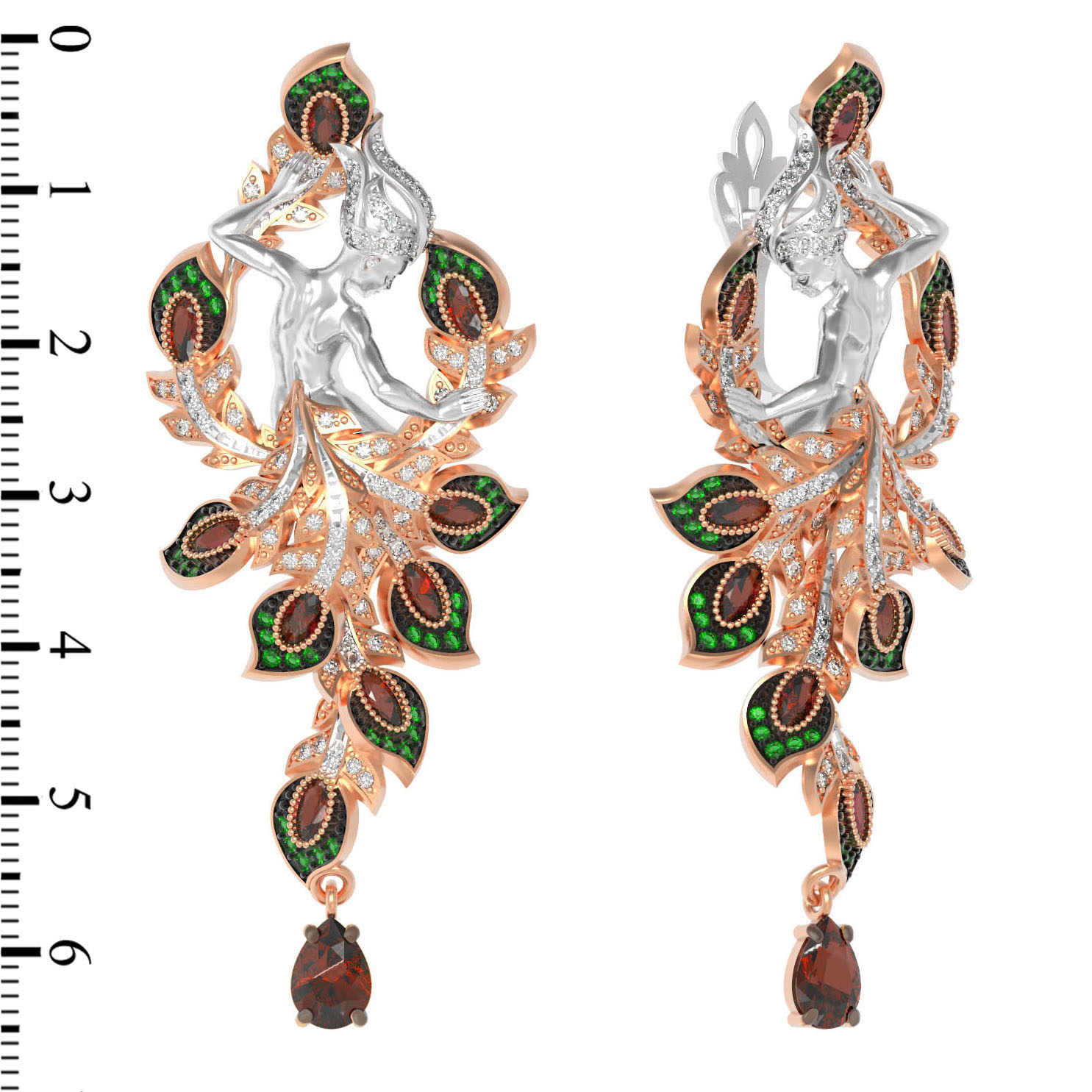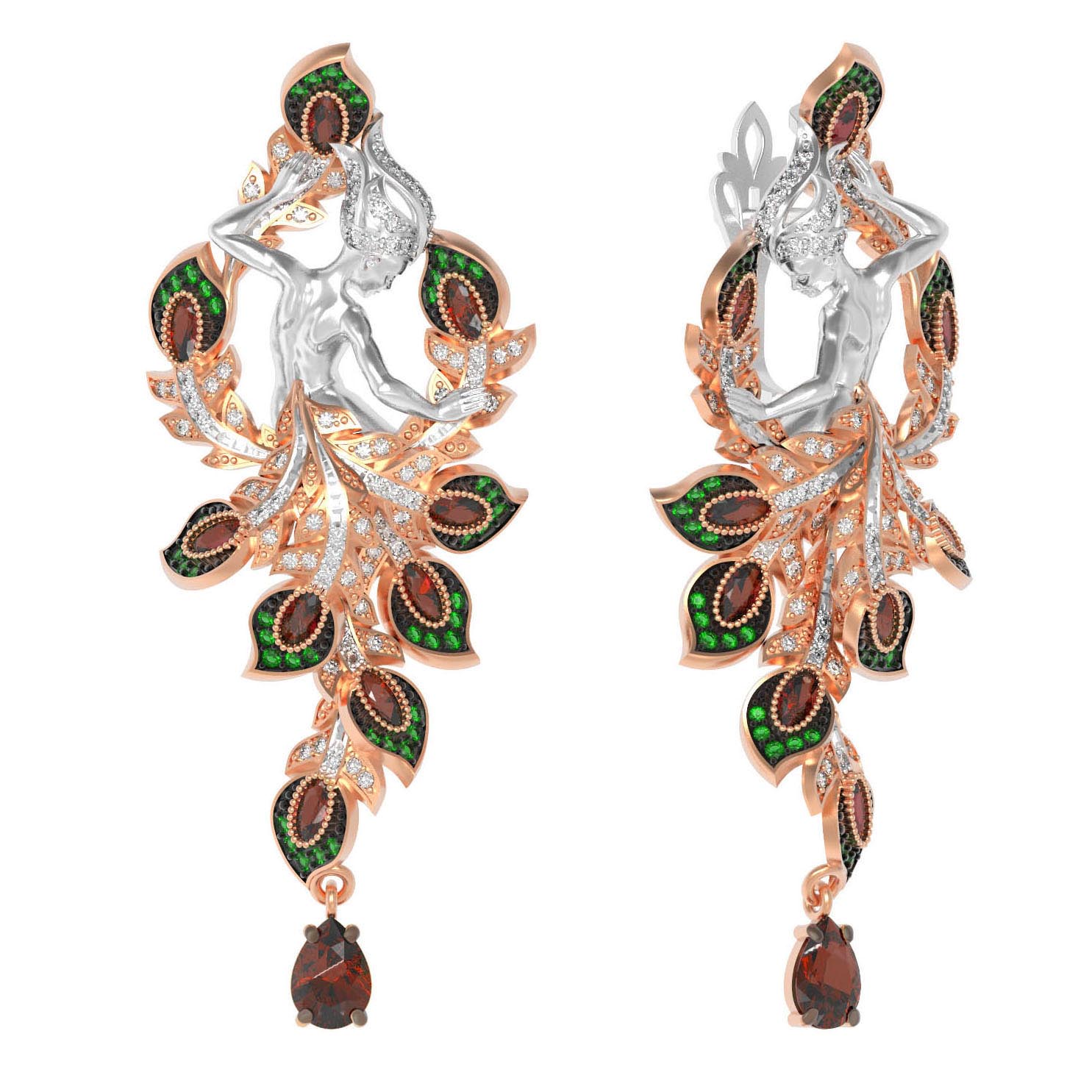 Особую выразительность модели придает впечатляющая россыпь из 274 вставок. Глубокий красный цвет граната эффектно контрастирует с насыщенным зелёным цветом фианитов, создавая динамичную и притягательную игру света. Разнообразие форм вставок — груша, круг и овал — добавляет композиции объем и текстурную сложность. Эти серьги из красного золота подойдут как для женщин, так и для мужчин, предпочитающих смелые и статусные аксессуары с глубоким смыслом. Выбирая данное украшение, вы делаете ставку на безупречное качество исполнения и уникальный стиль, вдохновленный древними легендами.