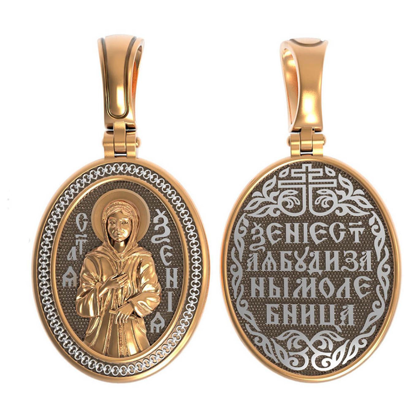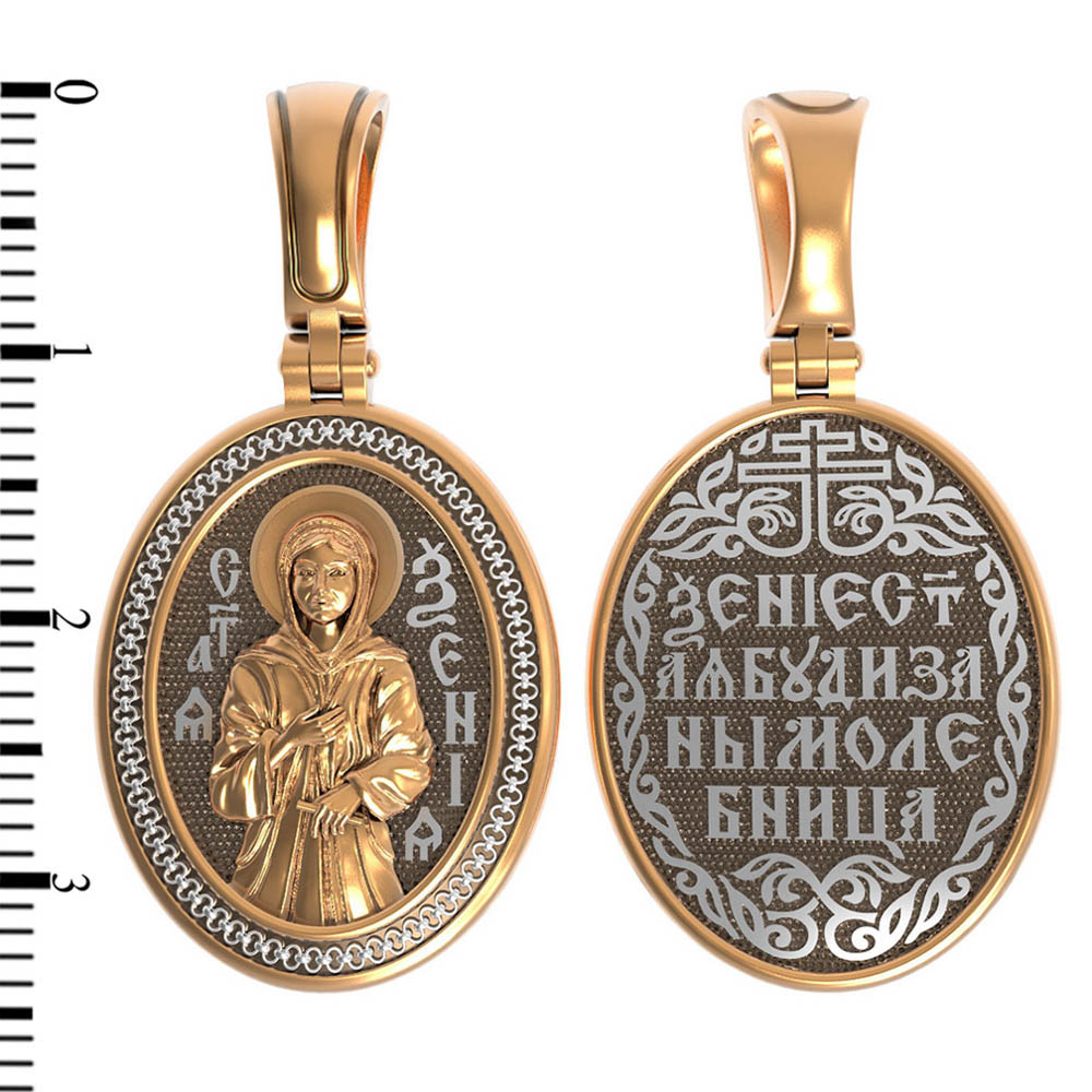 На оборотой стороне образка написана молитва: «Ксения святая, буди за нас молебница».