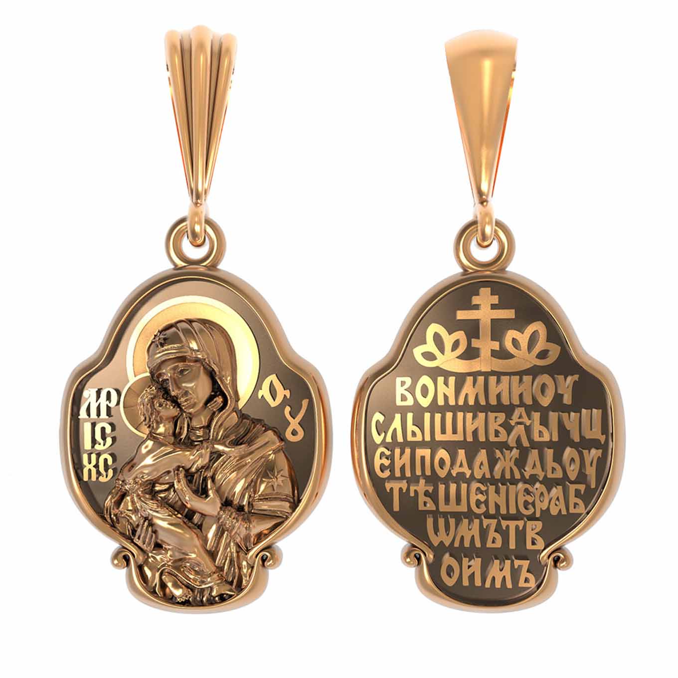 Лицевую сторону возглавляет Владимирская икона Божией Матери. По преданию, она была написана на доске трапезного стола из дома Иисуса Христа. На Русь икона была привезена в начале XII века и с тех пор почитается как главная святыня нашего Отечества. Перед ней молитвенно просят Богородицу об исцелении от телесных недугов, в частности, заболеваний сердца и сердечно-сосудистой системы. За помощью к Владимирской иконе Божией Матери обращаются во время бедствий, когда нуждаются в защите от врагов.