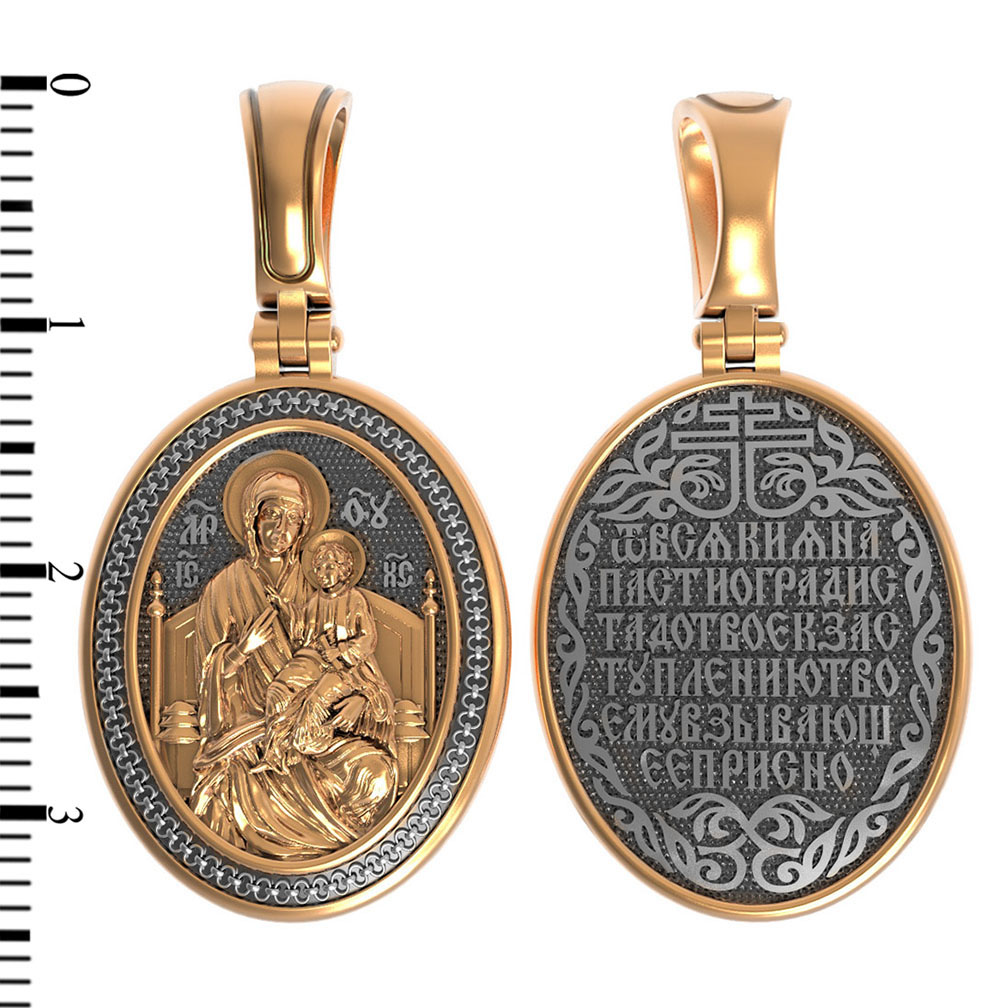 На обороте образка написана молитва Богородице в честь Ее иконы «Всецарица» (Пантанасса): «От всякия напасти огради стадо Твое, к заступлению Твоему взывающее присно».