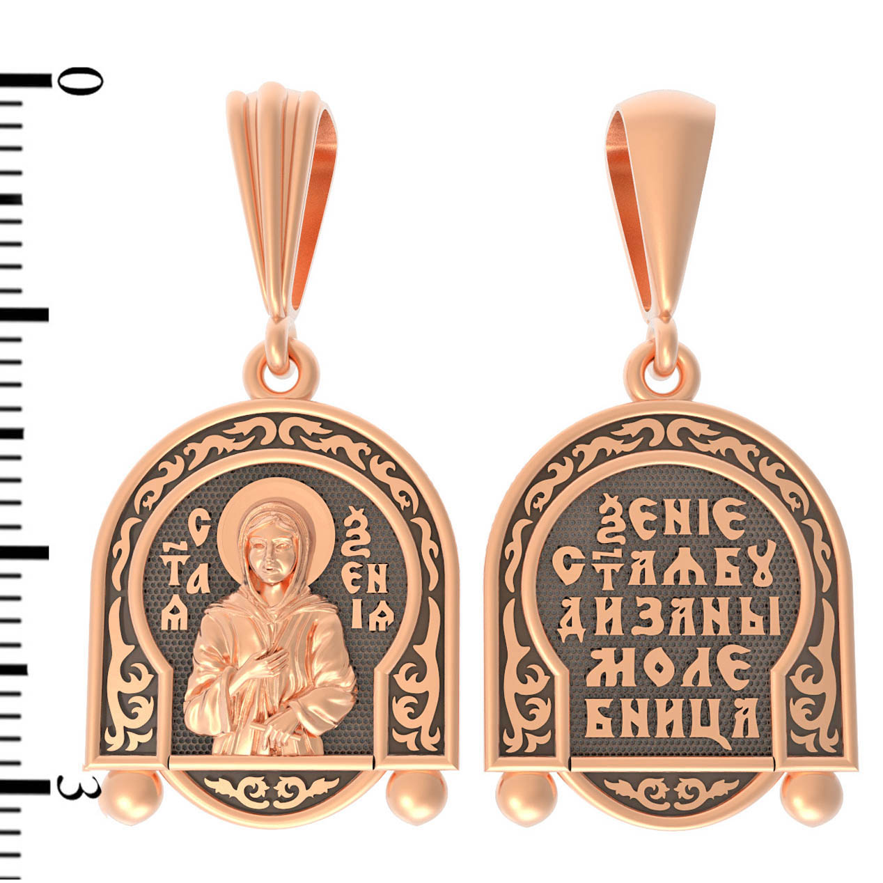 На оборотой стороне образка написана молитва: «Ксения святая, буди за нас молебница».