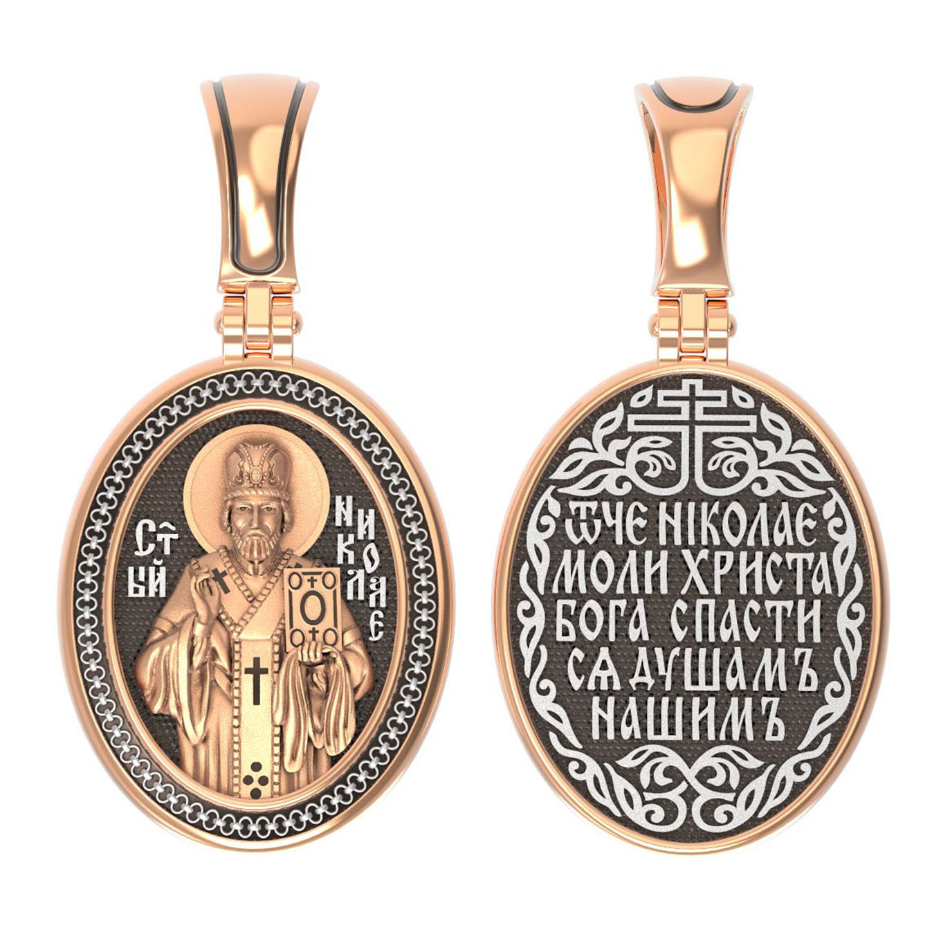 Лицевую сторону возглавляет икона святителя Николая Чудотворца. Святитель Николай родился во второй половине III века в Малой Азии в Ликийском городе Патары. С рождения Божий Угодник проявлял необыкновенные дарования. Сохранилось Предание, что во время крещения он, никем не поддерживаемый, простоял в купели три часа. С детства святитель избегал пустых развлечений, любил молитву, прекрасно учился и проводил свободное время за чтением Священного Писания. По достижении зрелого возраста жители Патар выбрали его своим пресвитером. Несколько лет спустя св. Николай стал епископом в городе Миры, столице Ликии.