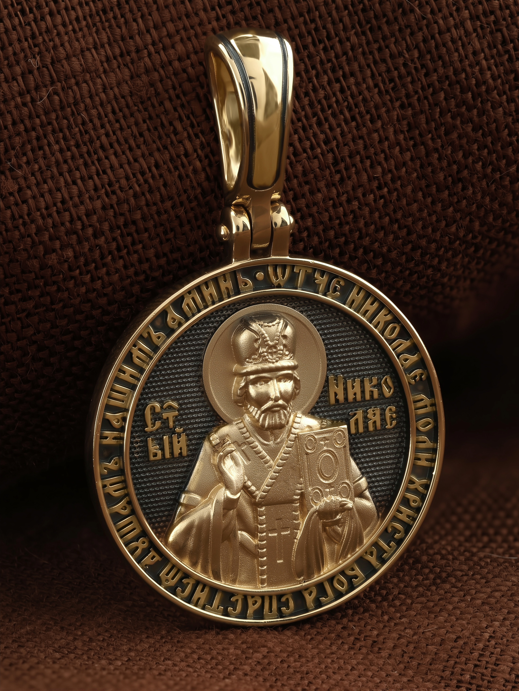 На лицевой стороне образка изображен Святитель Николай архиепископ Мир Ликийских, Чудотворец. Он является одним из самых почитаемых святых в православном мире. Избранник Божий Николай стал вершиной всех добродетелей. С кем из величайших праведников не сравнялся он образом духовной красоты, кому из них не последовал в своих деяниях и чудотворениях? Всеблаженный Николай был кроток, как Моисей, мужественен, как Давид, славен простотой нрава, как Иаков. Словно Ной, он спасал стадо Господне в новом ковчеге от потопа ересей. Вся жизнь святого Николая — это служение Богу. Много великих чудес сотворил на земле и на море великий Святитель Николай Угодник. Он укрощал штормы, спасал от потопления и выносил на сушу из глубины морской, освобождал из плена и приносил освобожденных домой, избавлял от уз и темницы, освобождал от смерти и подавал многим различные исцеления: слепым — прозрение, хромым — хождение, глухим — слух.