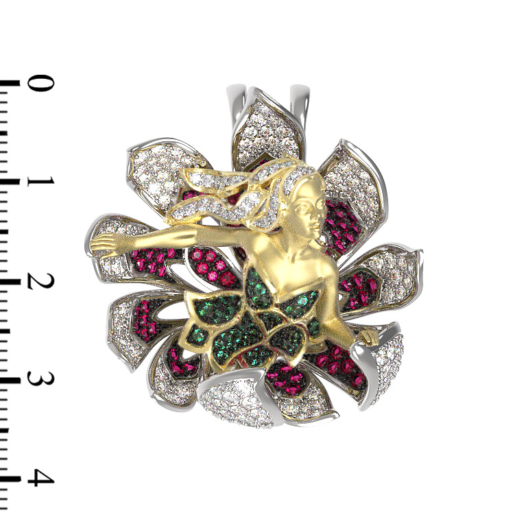 Откройте для себя магию искусства с этой изысканной подвеской из белого золота 585 пробы. Украшение из коллекции De Luxe — Мифология представляет собой настоящее воплощение мифологического дизайна, где мастерство ювелиров встречается с вечной красотой легенд. Центральным элементом композиции является искусная фигура, словно ожившая в драгоценном металле, окруженная цветочным орнаментом.
