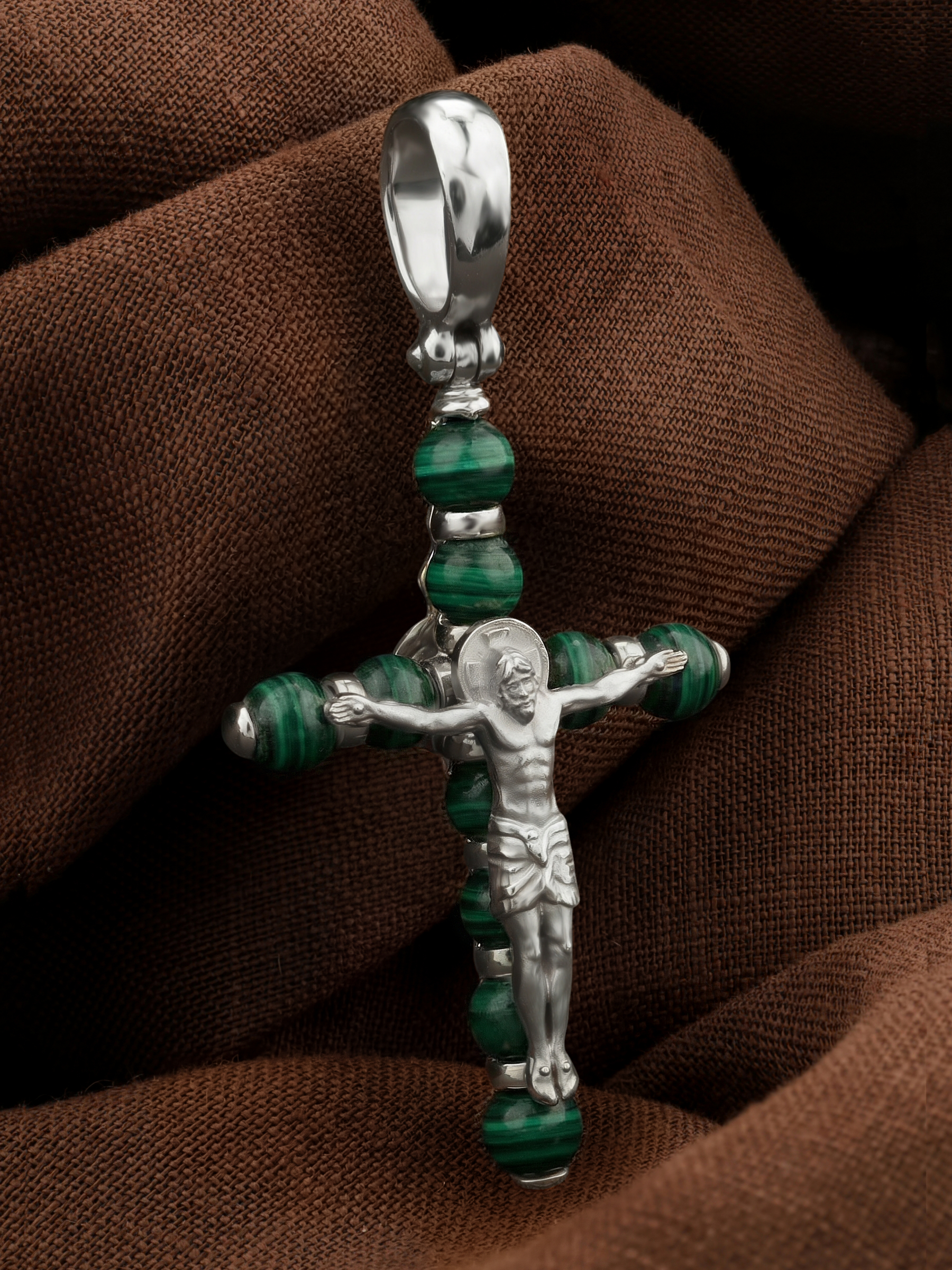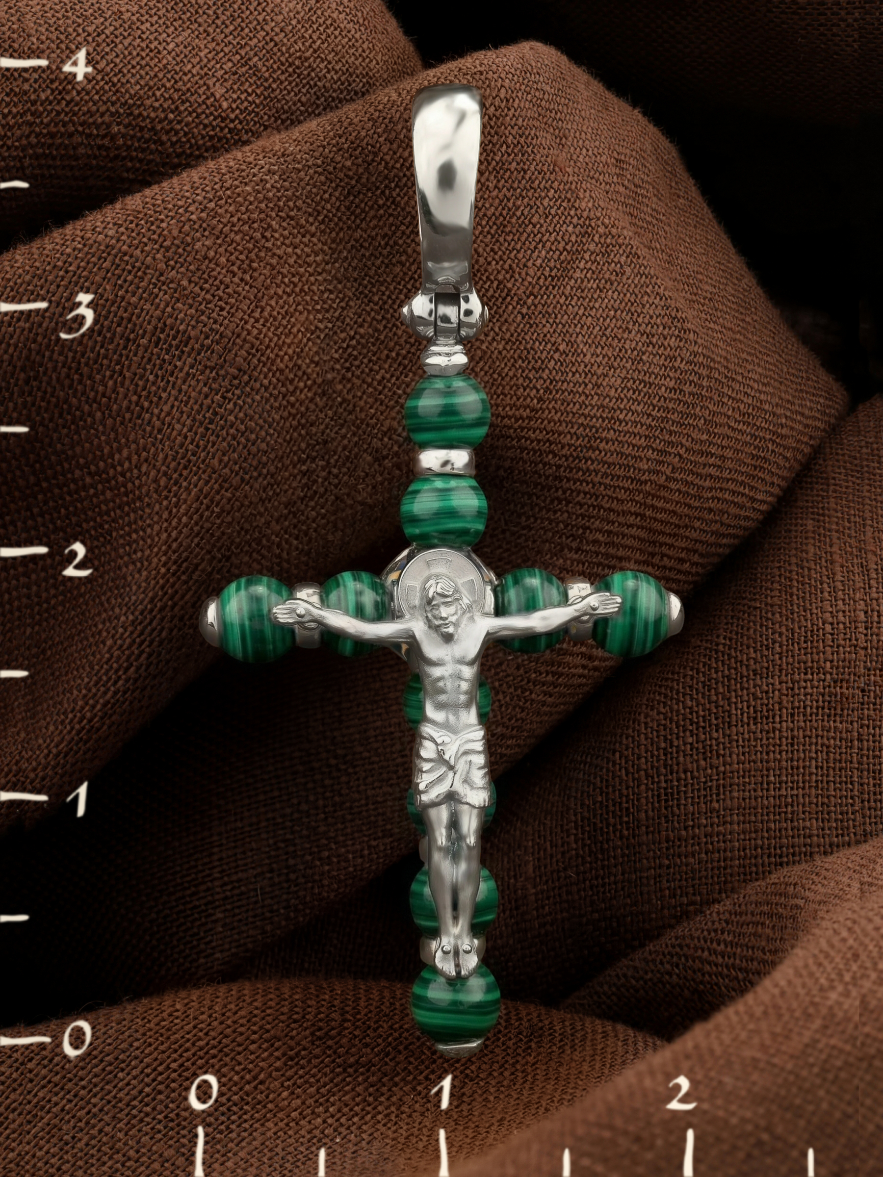 Крест из белого золота c малахитом