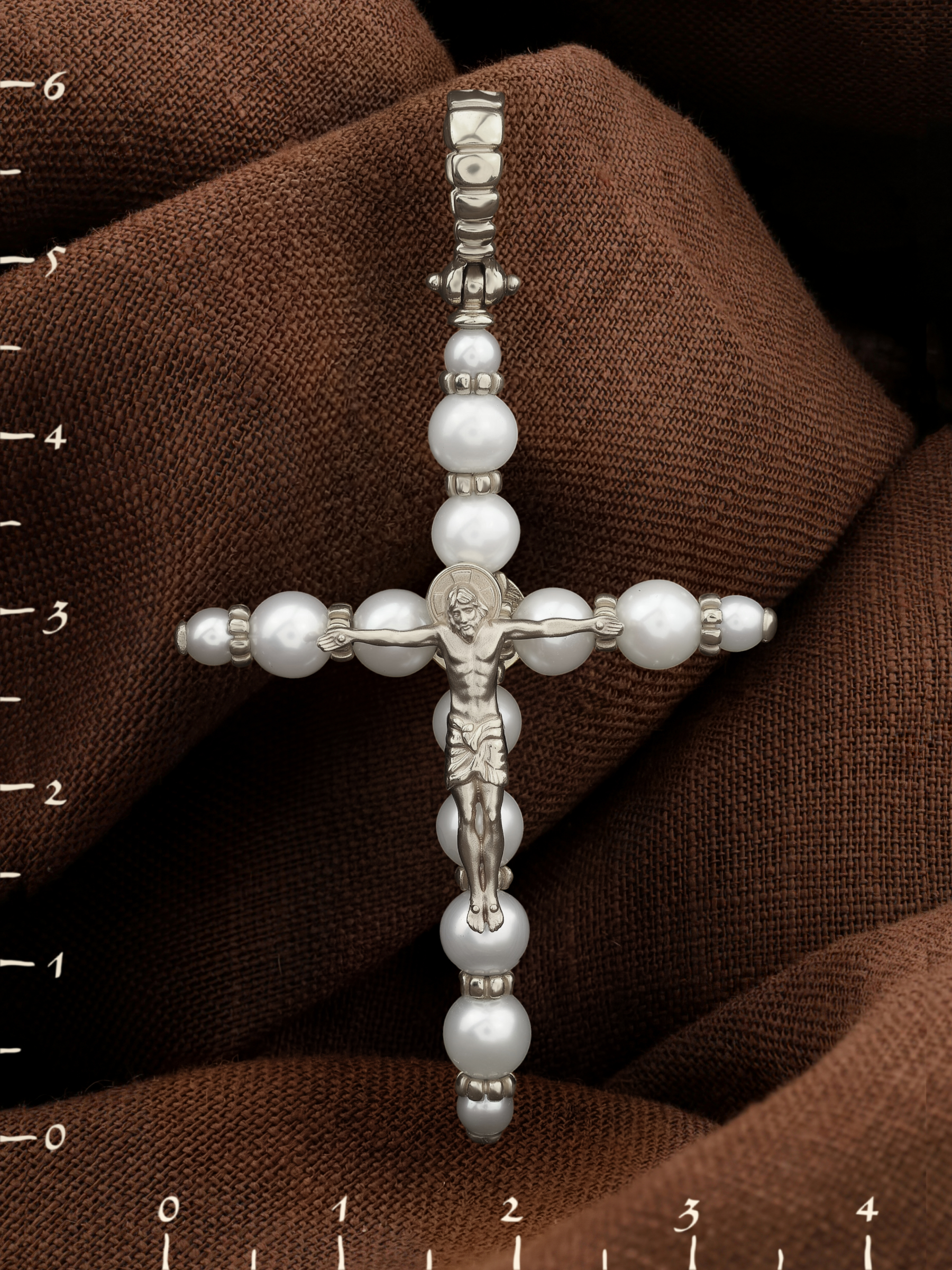 Крест из белого золота c жемчугом