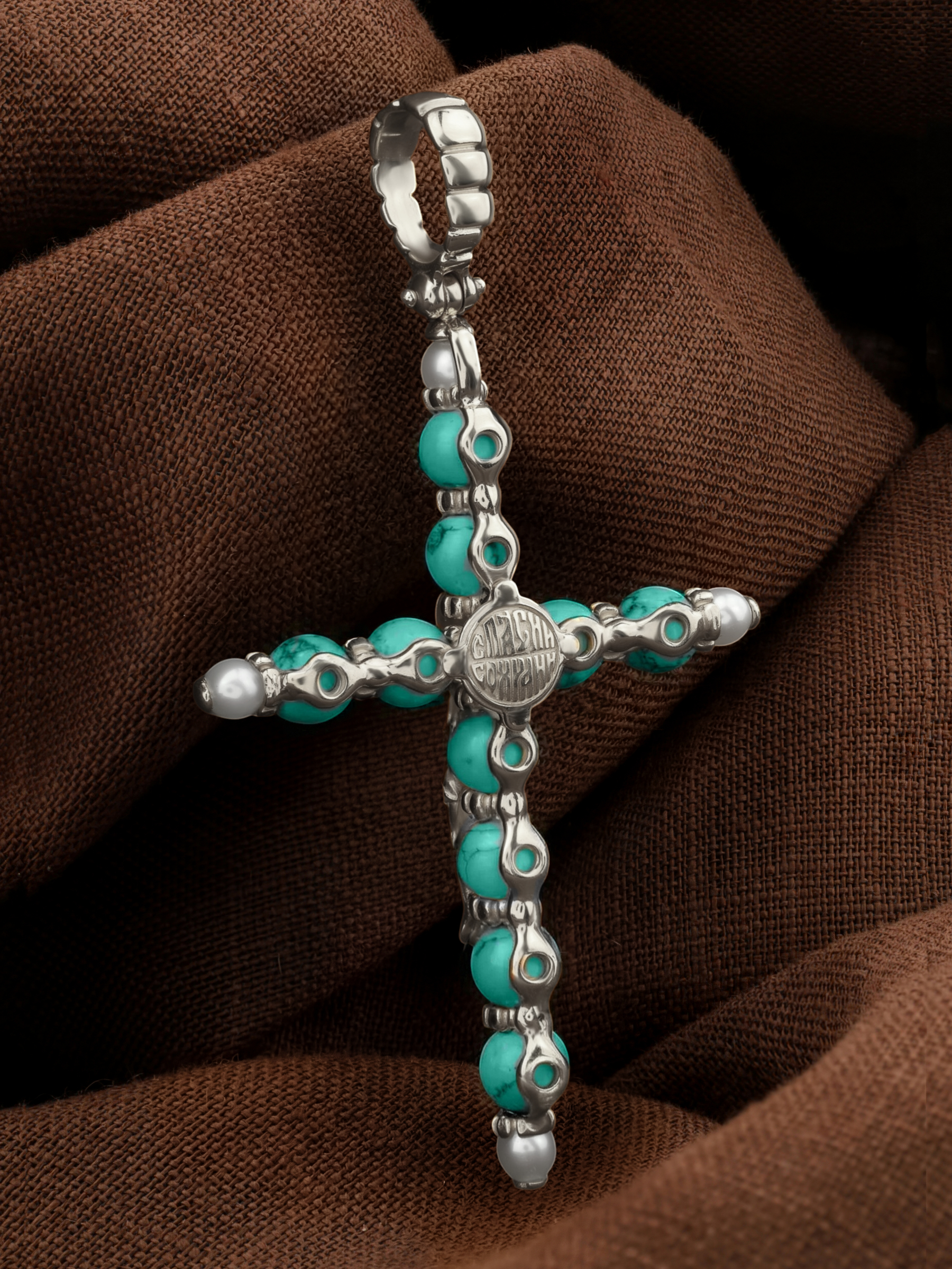 В центрально части оборотной стороны креста написана молитва: «Спаси и сохрани