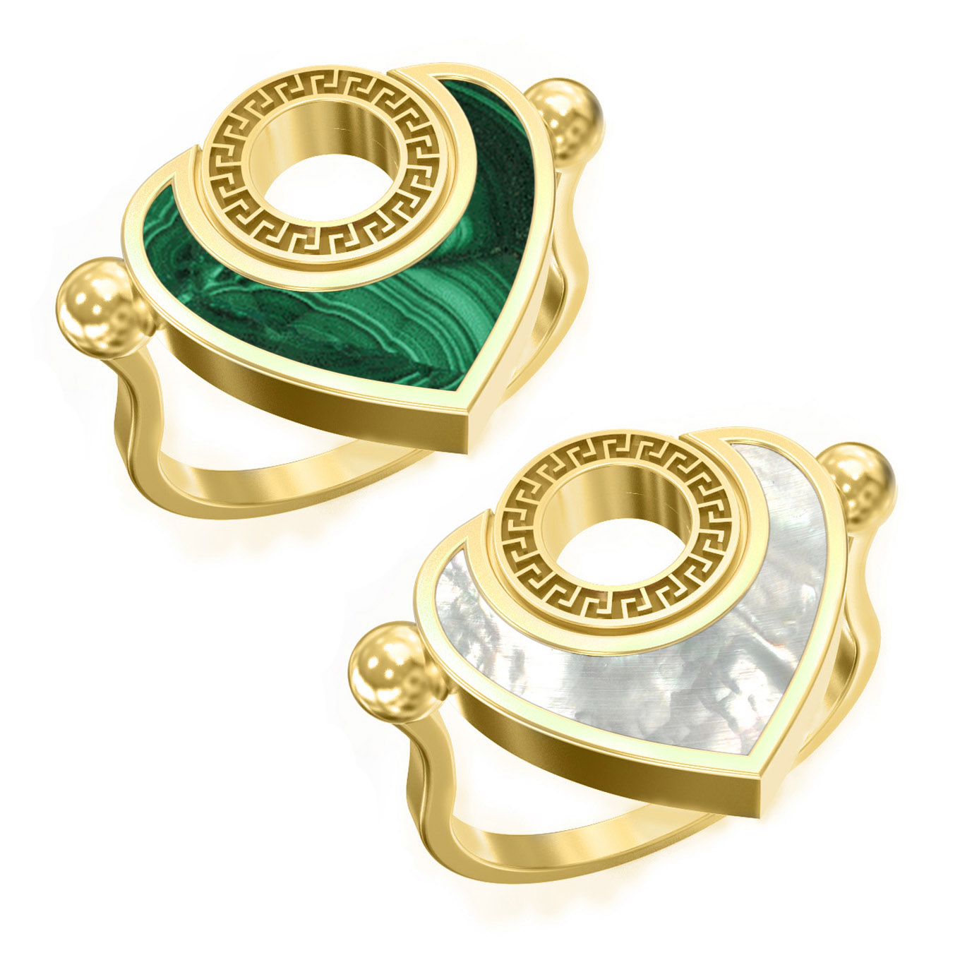 Кольцо из лимонного золота c малахитом и перламутром