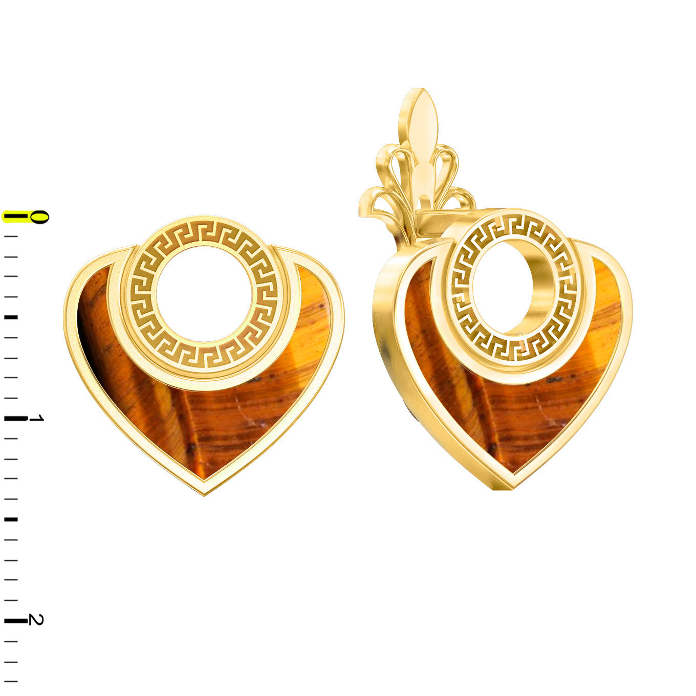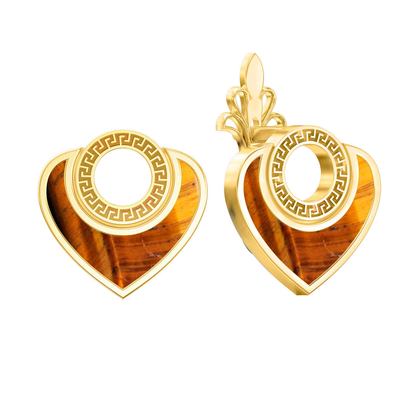 Лимонный оттенок золота идеально гармонирует с теплым, природным сиянием тигрового глаза, создавая благородный образ. Эти серьги — не просто украшение, это акцент, который подчеркнет индивидуальность и статус. Универсальность дизайна позволяет носить их как женщинам, так и мужчинам, предпочитающим утонченные и символичные аксессуары. Данная модель выполнена с вниманием к деталям, а ее лаконичная, но выразительная форма в виде сердца делает серьги прекрасным выбором для повседневного ношения или дополнения вечернего образа. Изделие также отлично подходит для составления ювелирных комплектов, которые станут гармоничным завершением вашего стиля.