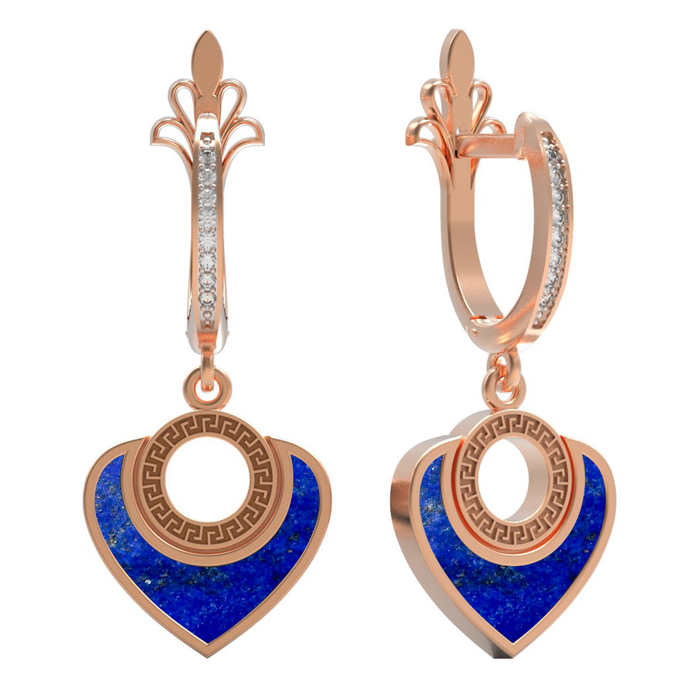 Элегантные серьги из коллекции De Luxe — С любовью станут воплощением утонченного вкуса и стиля. Это украшение выполнено из красного золота 585 пробы, чей теплый оттенок идеально гармонирует с глубоким синим цветом натурального лазурита. Глубина камня подчеркивается сиянием 18 вставок из белого фианита, которые придают изделию особенный блеск и выразительность. Мастера ювелирного дела уделили внимание каждой детали, воплотив в жизнь изысканный дизайн в форме сердец.