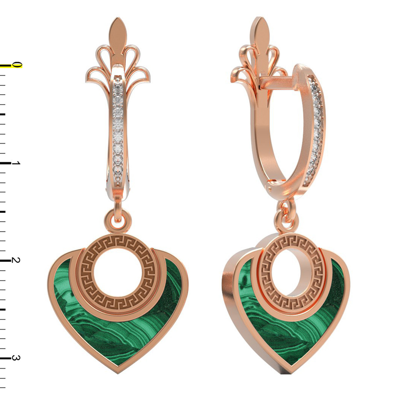 Серьги из красного золота 585 пробы — это воплощение элегантности и глубокого смысла. Изделие из коллекции De Luxe — С любовью привлекает внимание своим утонченным дизайном в форме сердец, который символизирует искренние чувства и гармонию. Благородный оттенок красного золота подчеркивает природную красоту вставок: насыщенного зеленого малахита и сверкающих белых фианитов.