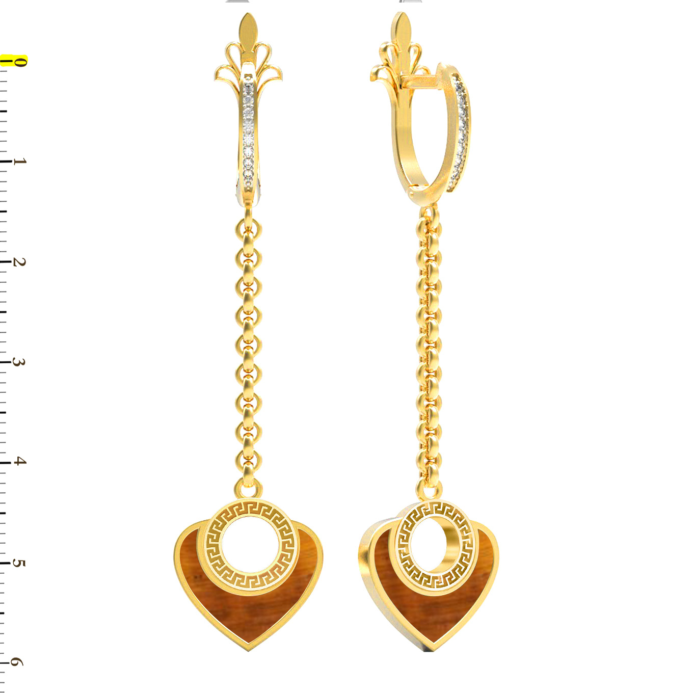 Серьги из лимонного золота c фианитом и тигровым глазом