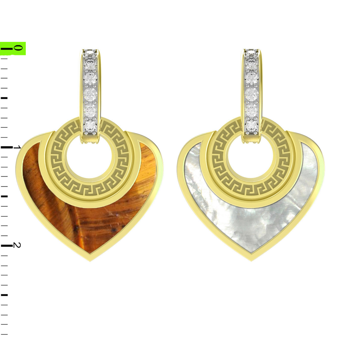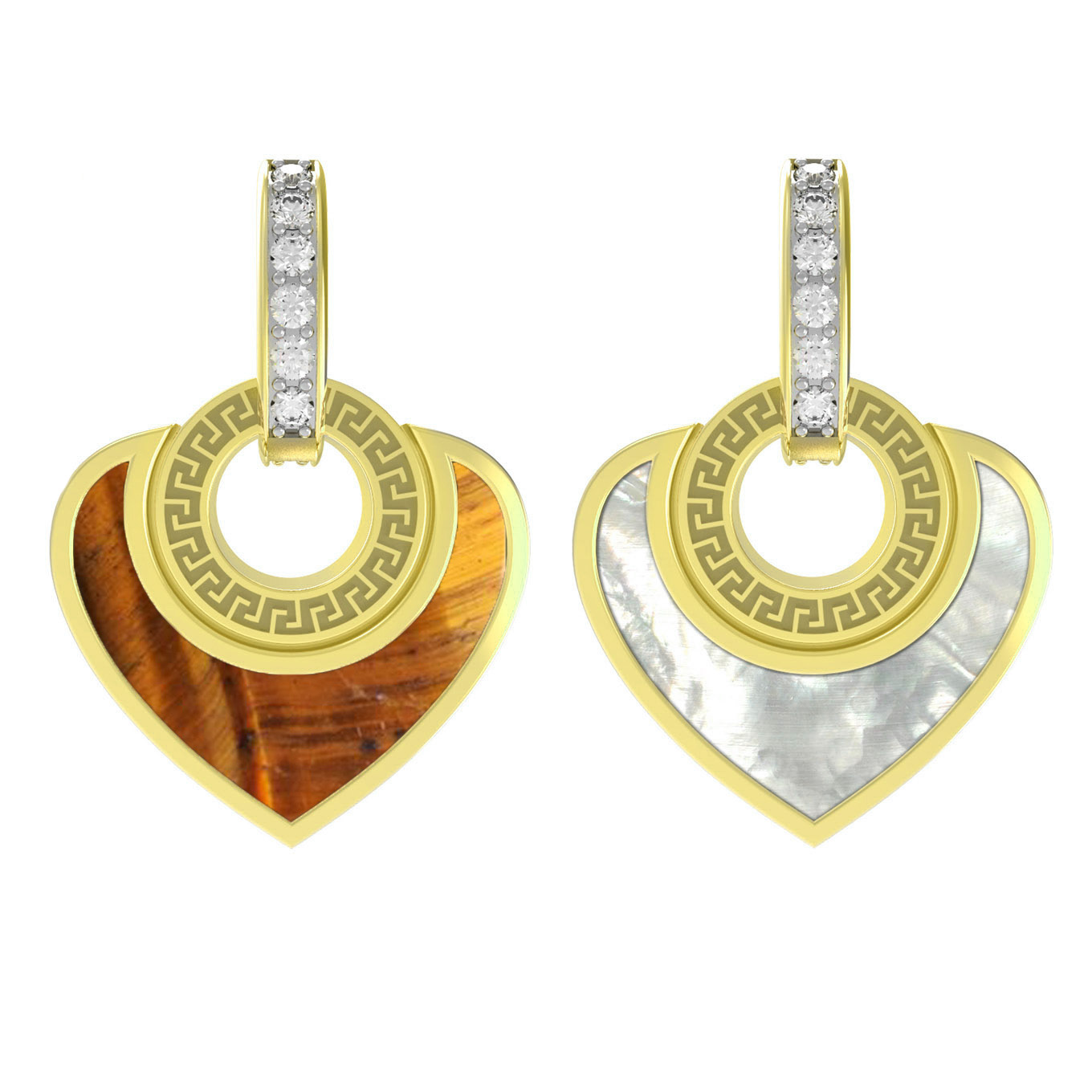 Подвеска из лимонного золота c фианитом, тигровым глазом и перламутром