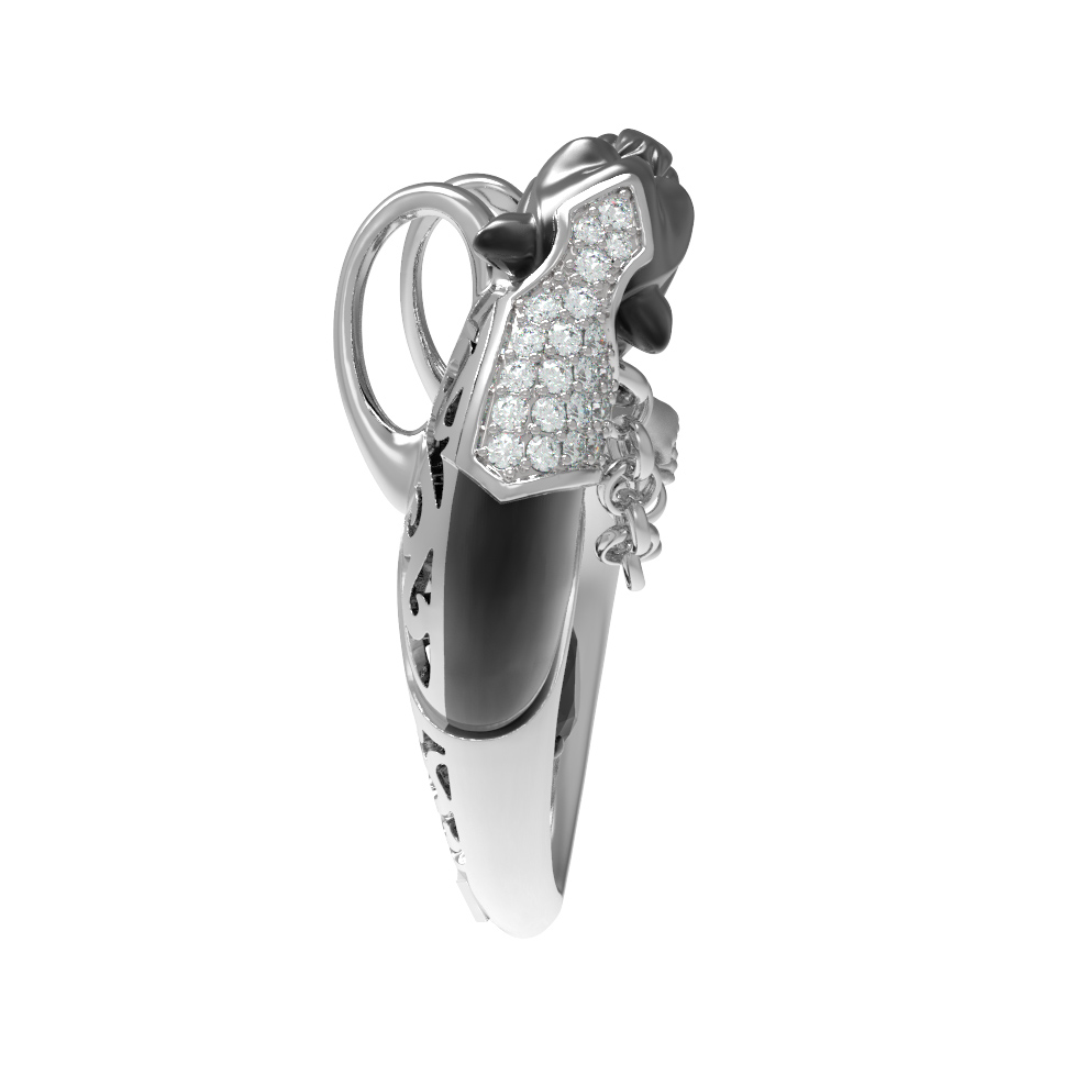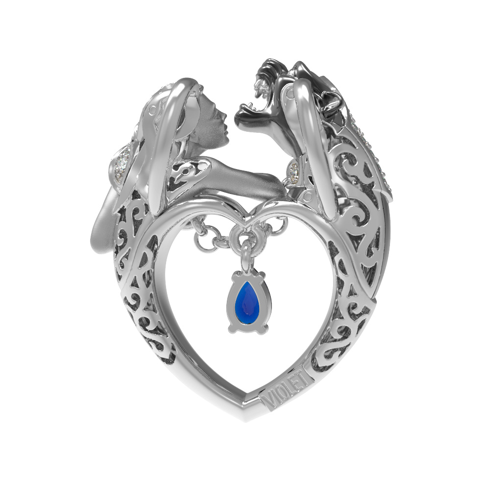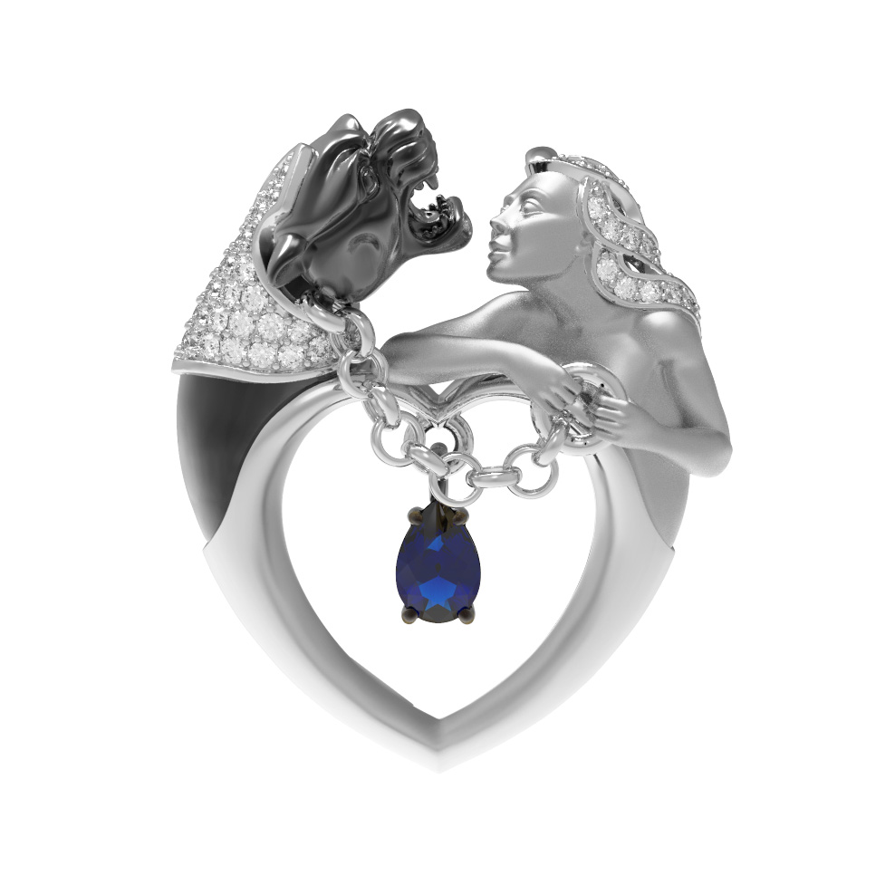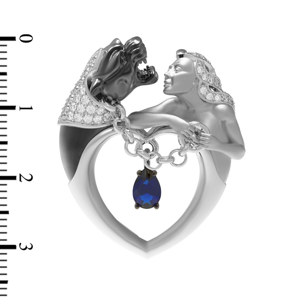 Дизайн изделия вдохновлен мифологией, где в тонком переплетении металла и камней читается сложная история. Детальная проработка персонажей дополнена россыпью из 49 вставок: блестящих фианитов круглой формы белого цвета, которые создают эффектное сияние при каждом движении. Контрастное сочетание материалов и продуманная композиция делают эту подвеску по-настоящему особенной.