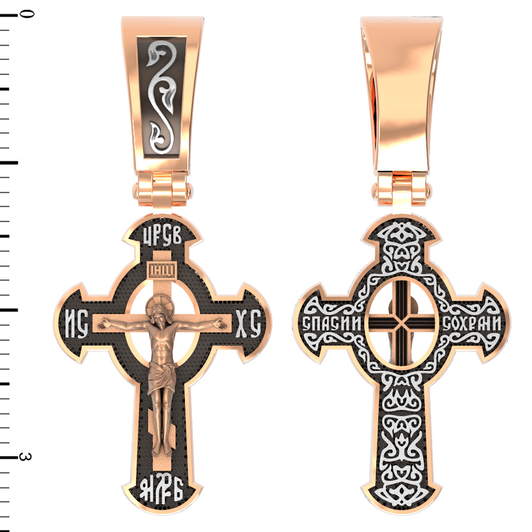 Оборотная сторона креста украшена растительным орнаментом. Помещенный на крест орнамент символизирует жизнедательную силу, животворное тепло креста. В растительный узор, на горизонтальной перекладине, вписано молитвенное славословие: «Спаси и сохрани». Эта надпись означает непрерывную молитву, совершаемую носителем данного креста.