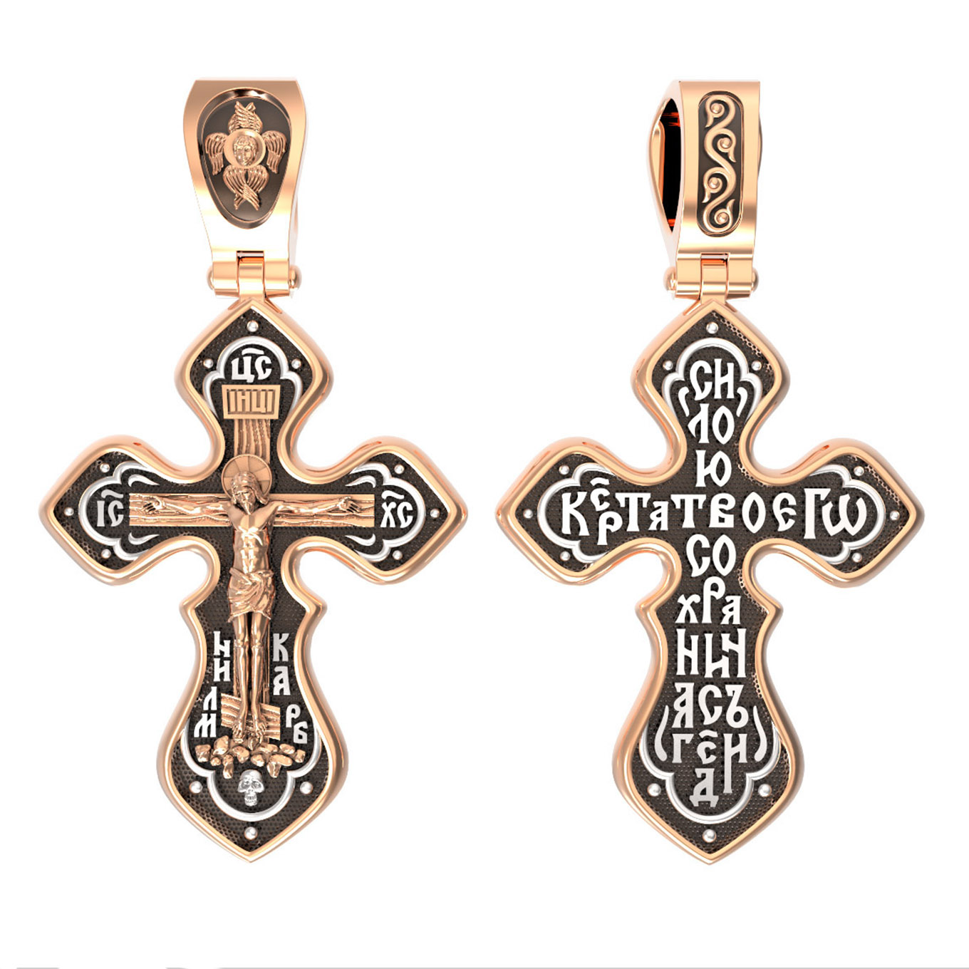 Крест с Распятием на лицевой стороне и молитвой на обороте выполнен в традициях русских нательных крестов. Его художественный образ отражает главное предназначение нательного креста — быть личным священным знаком Таинства Крещения. В Крещении человек получает второе, духовное рождение и усыновляется Богу, получая надежду на спасение и жизнь вечную. Ведь «если кто не родится от воды и Духа, не может войти в Царствие Божие».