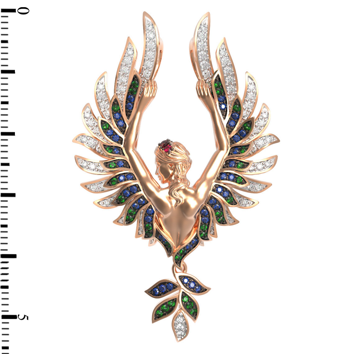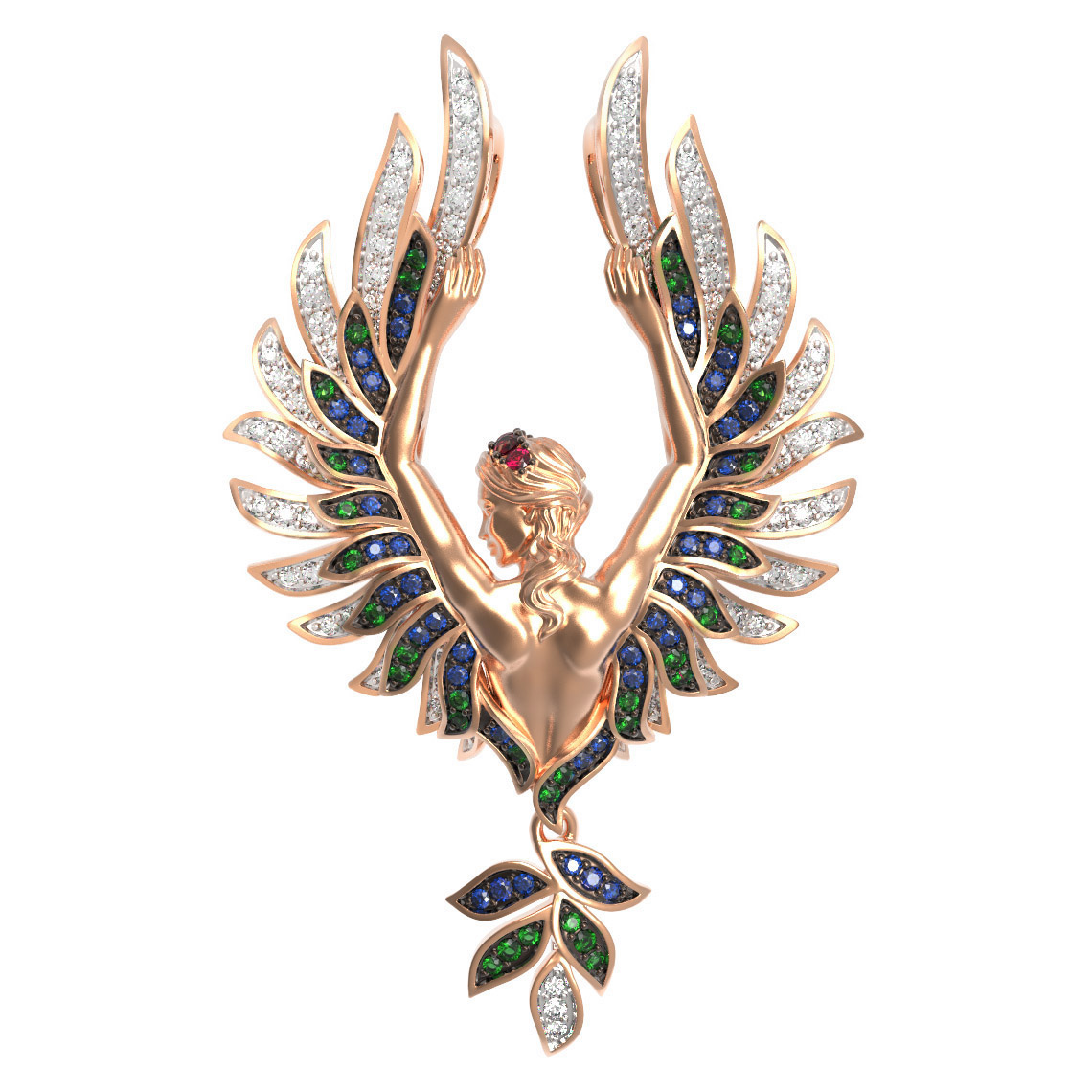 Воплощение величественной эстетики и глубокого символизма — изысканная подвеска из красного золота 585 пробы. Изделие из коллекции De Luxe — Мифология приковывает внимание сложным дизайном в мифологической тематике. Центральным элементом украшения стала утонченная женская фигура с грациозно расправленными крыльями, детально проработанными ювелирами. Каждый изгиб металла подчеркивает художественную ценность аксессуара, делая его выразительным акцентом вашего образа.