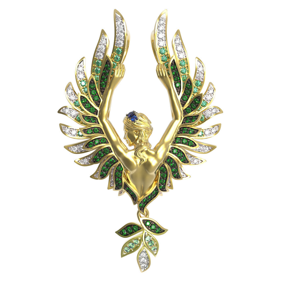 Роскошная подвеска из коллекции De Luxe — Мифология станет истинным воплощением вашего стиля, объединяя в себе искусство ювелирного мастерства и эстетику античных легенд. Изделие выполнено из высококачественного лимонного золота 585 пробы, чей благородный солнечный оттенок подчеркивает изящество линий и филигранную проработку деталей дизайна на мифологическую тематику. Центром композиции является утонченная фигура, воплощающая грацию и величие, дополненная выразительным украшением в виде крыльев.