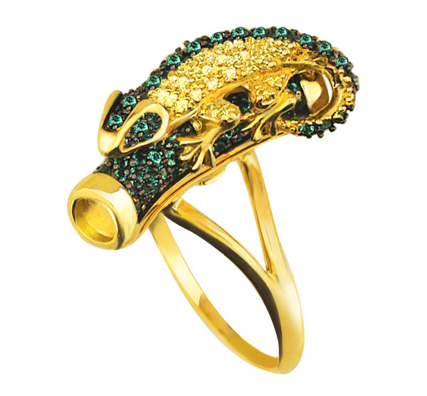 Сочетание драгоценного металла и ярких вставок делает это украшение отличным выбором для тех, кто ценит символичные дизайны и высокое качество исполнения. Это кольцо с саламандрой подчеркнет вашу индивидуальность и станет ярким дополнением к повседневному или вечернему гардеробу.