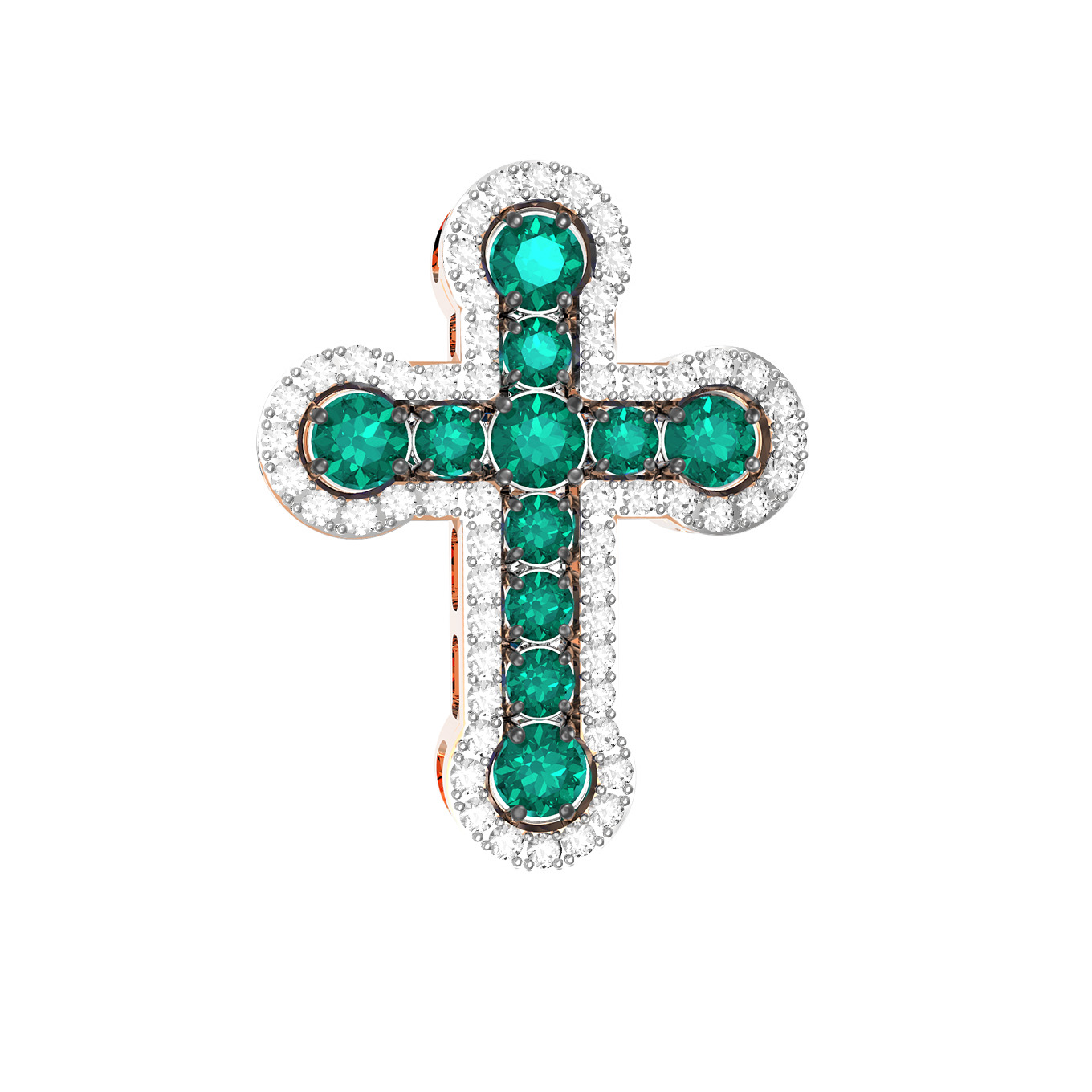 Роскошный крест из золота с бриллиантами и изумрудом из коллекции De Luxe Бриллианты — Крест с бриллиантами — это ювелирное произведение искусства, объединяющее в себе глубокий символизм и безупречный стиль. Изделие выполнено из благородного красного золота 585 пробы, чей теплый оттенок подчеркивает насыщенность вставок и создаёт благородное сияние при каждом движении.