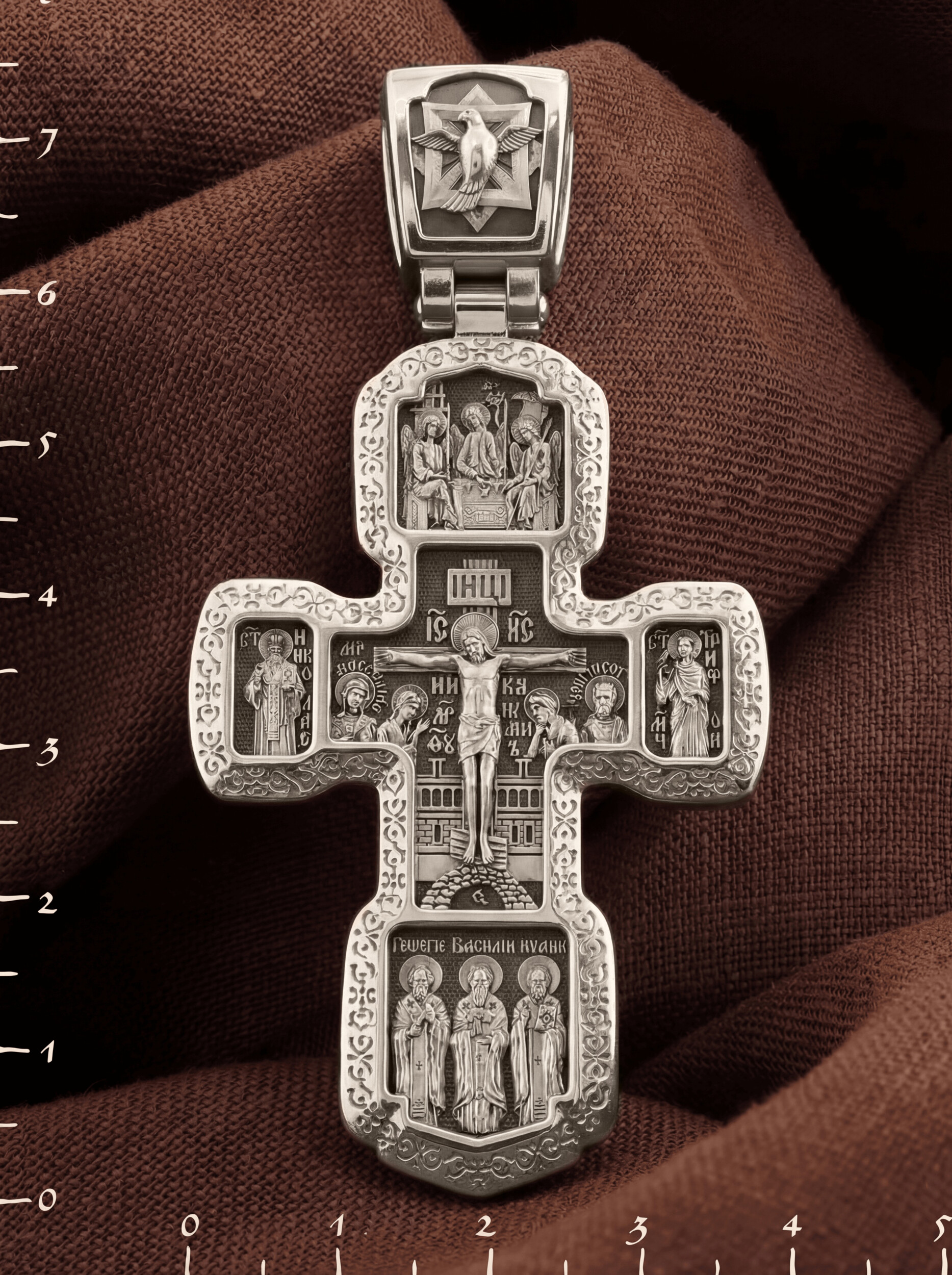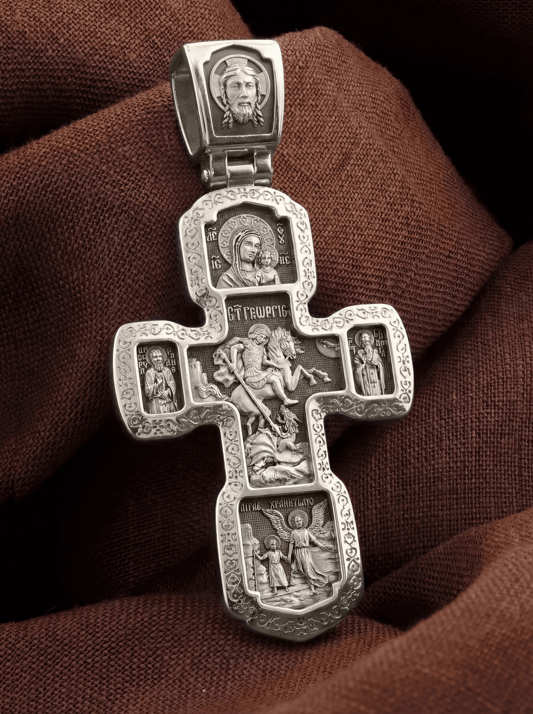 В центральной части оборота креста изображен Георгий Победоносец — покровителем и защитником воинов.