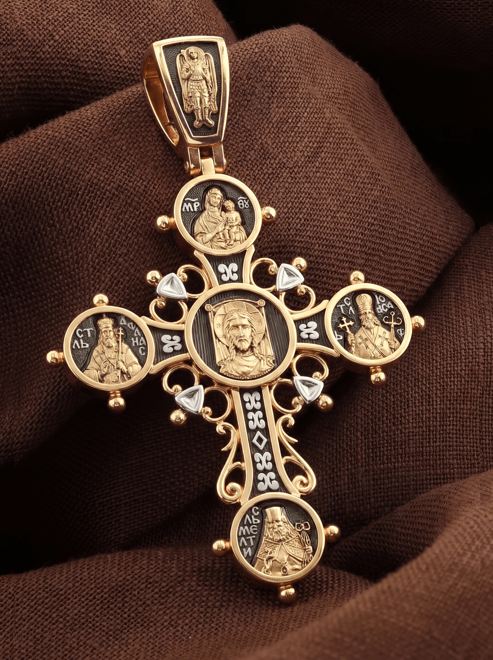 Сочетание креста и круга — мотив, имеющий древнее происхождение. У многих народов издревле круг обозначал небо, а крест — четырехчастную землю. Эти ёмкие символы, как и многие другие, наследовало христианство и обогатило их новым понятийным уровнем. Круг стал не только символом неба, но и знаком бесконечности и безначальности Бога, вечной жизни и совершенной гармонии. Крест перестал обозначать лишь стороны света. Он сделался знаменем христианства, символом земных страданий Христа, искупления человечества, соразмерности и целостности земного и небесного бытия.