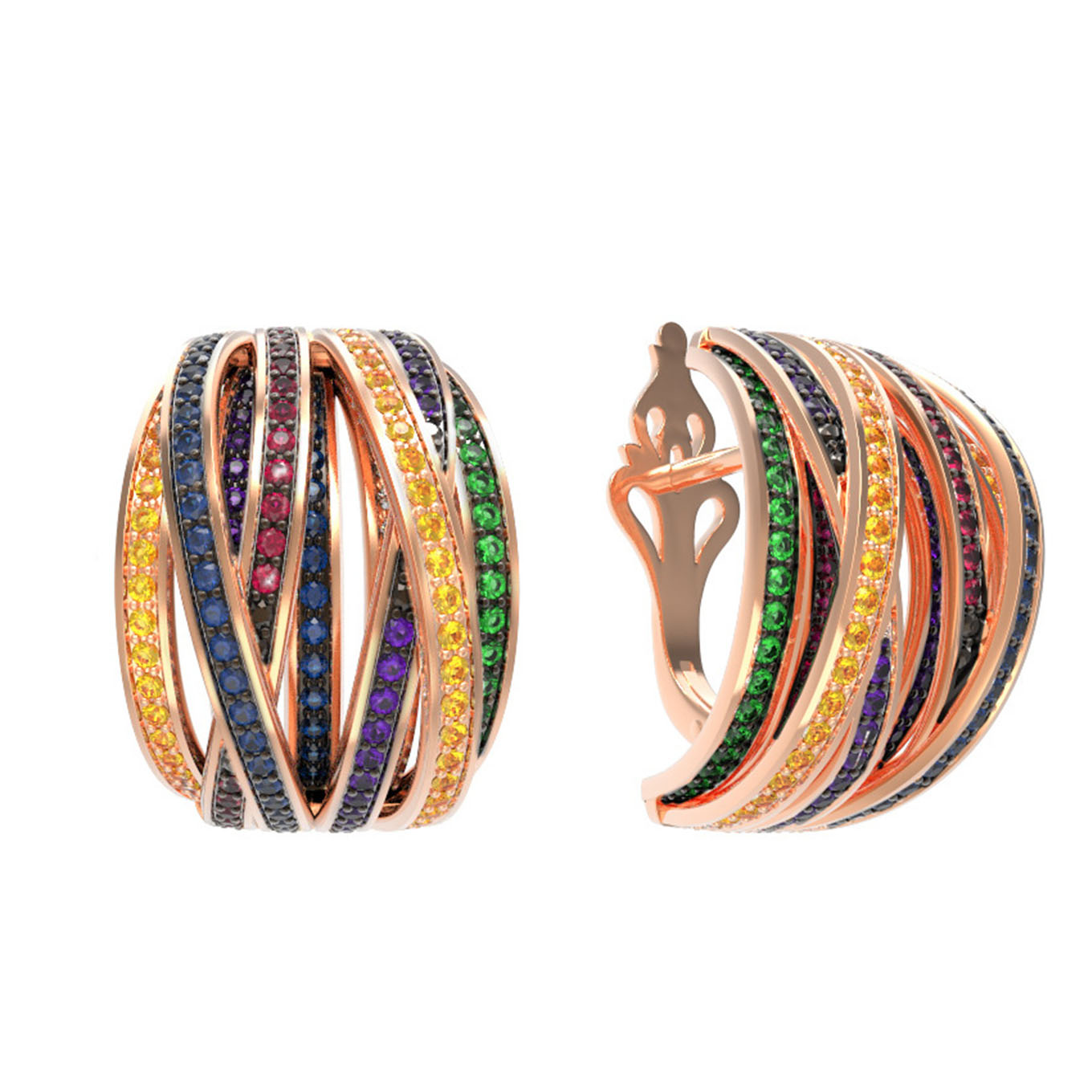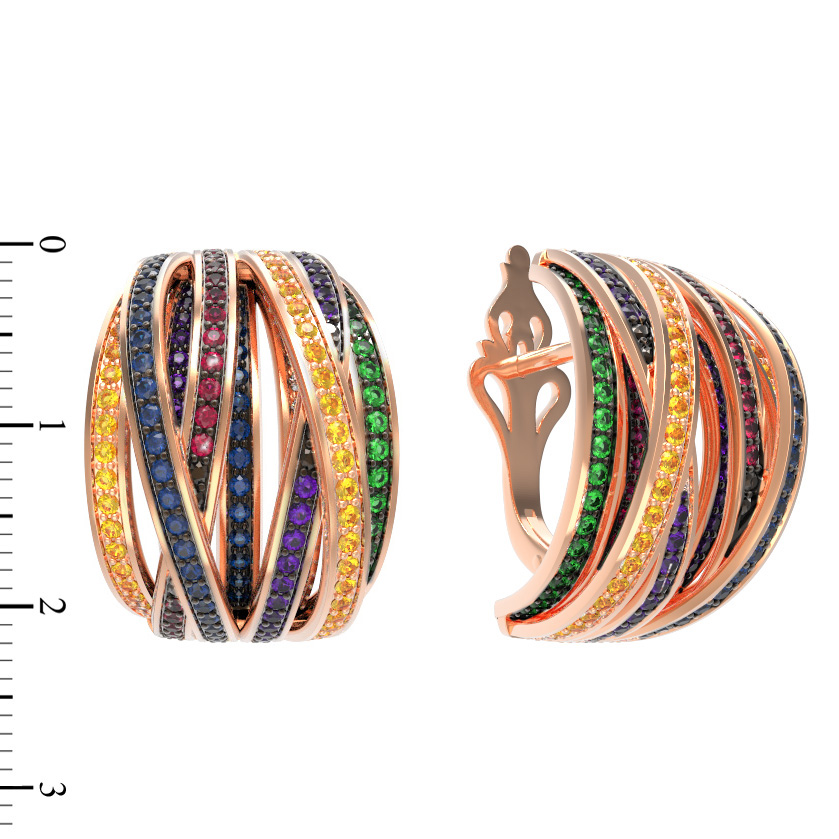 Главной особенностью модели является невероятное количество вставок — 332 фианита круглой огранки. Камни подобраны в красном цвете вставок, что создает завораживающий визуальный эффект и придает украшению исключительный блеск. Золото красного цвета мягко подсвечивает ювелирные камни, усиливая их сияние и подчеркивая сложность конструкции. Надежный замок обеспечивает комфортную посадку при ежедневном ношении.
