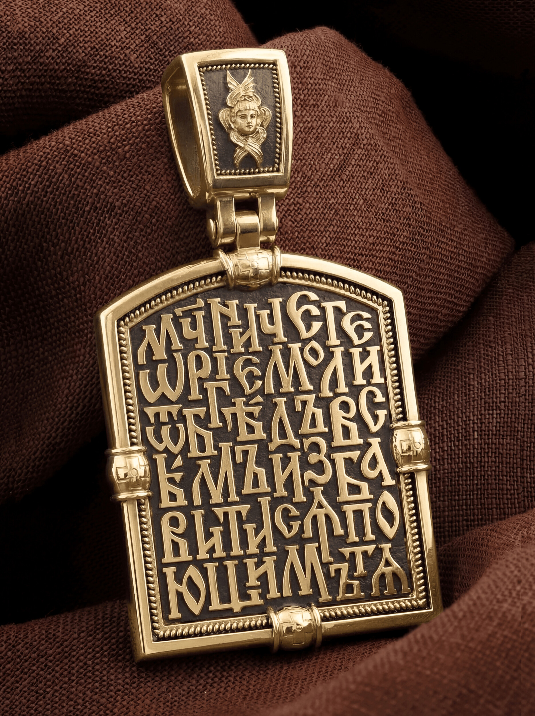 На кулонном кольце изображен шестикрылый Серафим — самый приближенный к Господу Ангел.