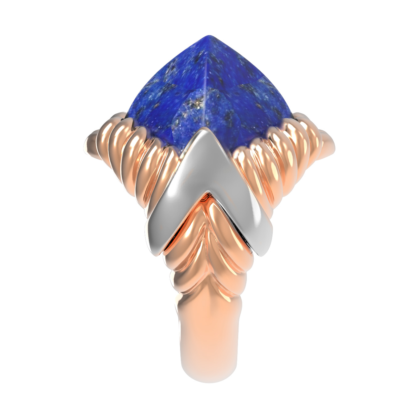 Кольцо из красного золота 585 пробы из коллекции De Luxe — Геометрия станет идеальным акцентом в вашем образе. Это украшение объединяет в себе благородный блеск драгоценного металла и глубокий, насыщенный цвет натурального лазурита. Дизайн модели подчеркивает эстетику геометрии: центральная вставка выполнена в форме эффектного ромба, которая притягивает взгляд своей четкостью и глубиной синего оттенка.