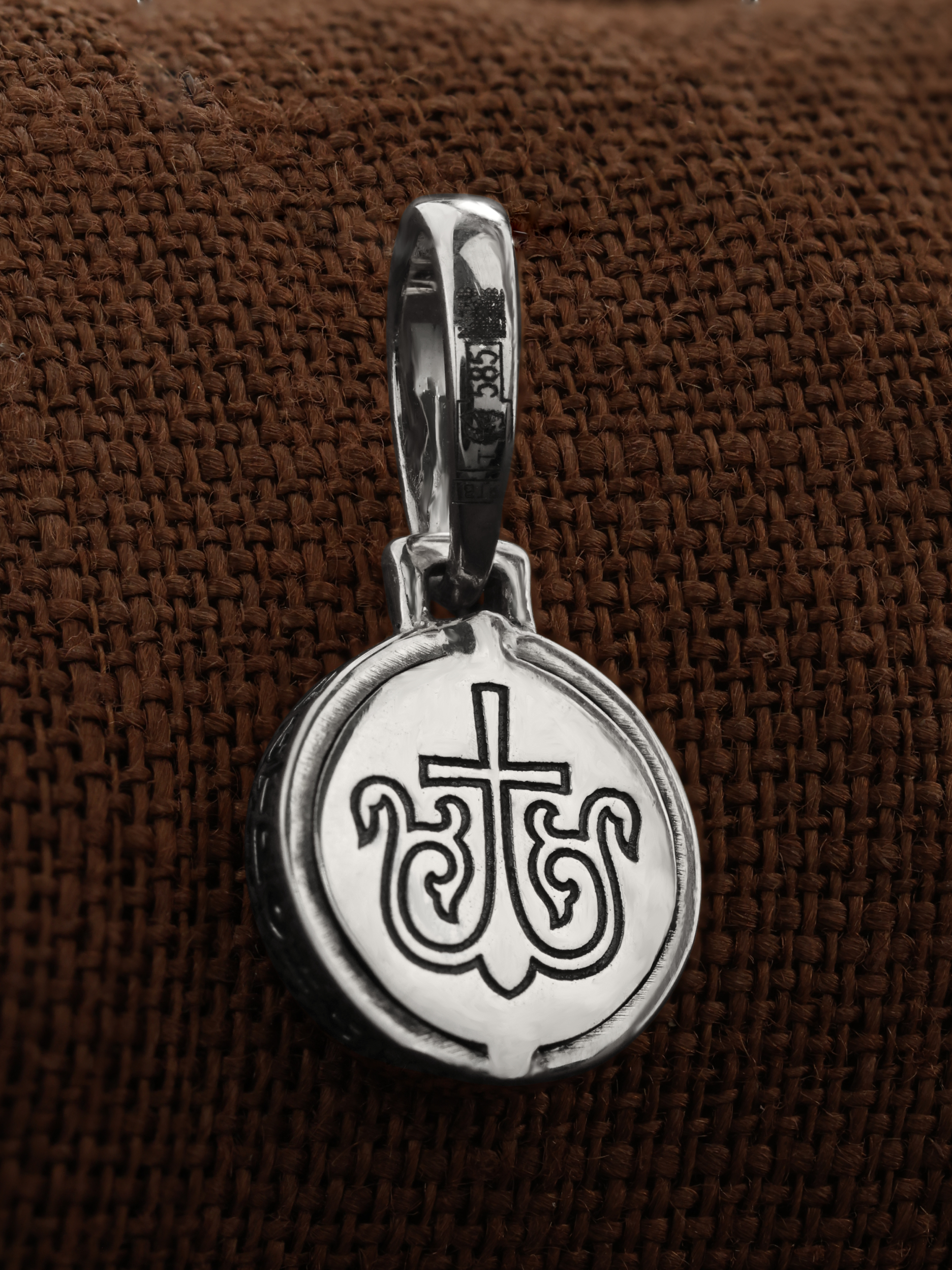 На обротной стороне изображён Крест «виноградная лоза». Крест, имеющий наклонное подножие, а из нижнего конца как бы вьются вверх два стебля с листами и с виноградной кистью на каждом. «Я есмь лоза, а вы ветви; кто пребывает во Мне, и Я в нем, тот приносит много плода» (Ин. 15, 5). Виноградной лозой называл себя Сам Спаситель и с тех пор образ этот стал глубоко символичен- Главное значение виноградной лозы для христиан, — пишет А. С. Уваров, — находилось в символической связи с Таинством Причащения. Причащаясь, пребываем мы во Господе, и Он в нас, и тогда получаем много «плода духовного».