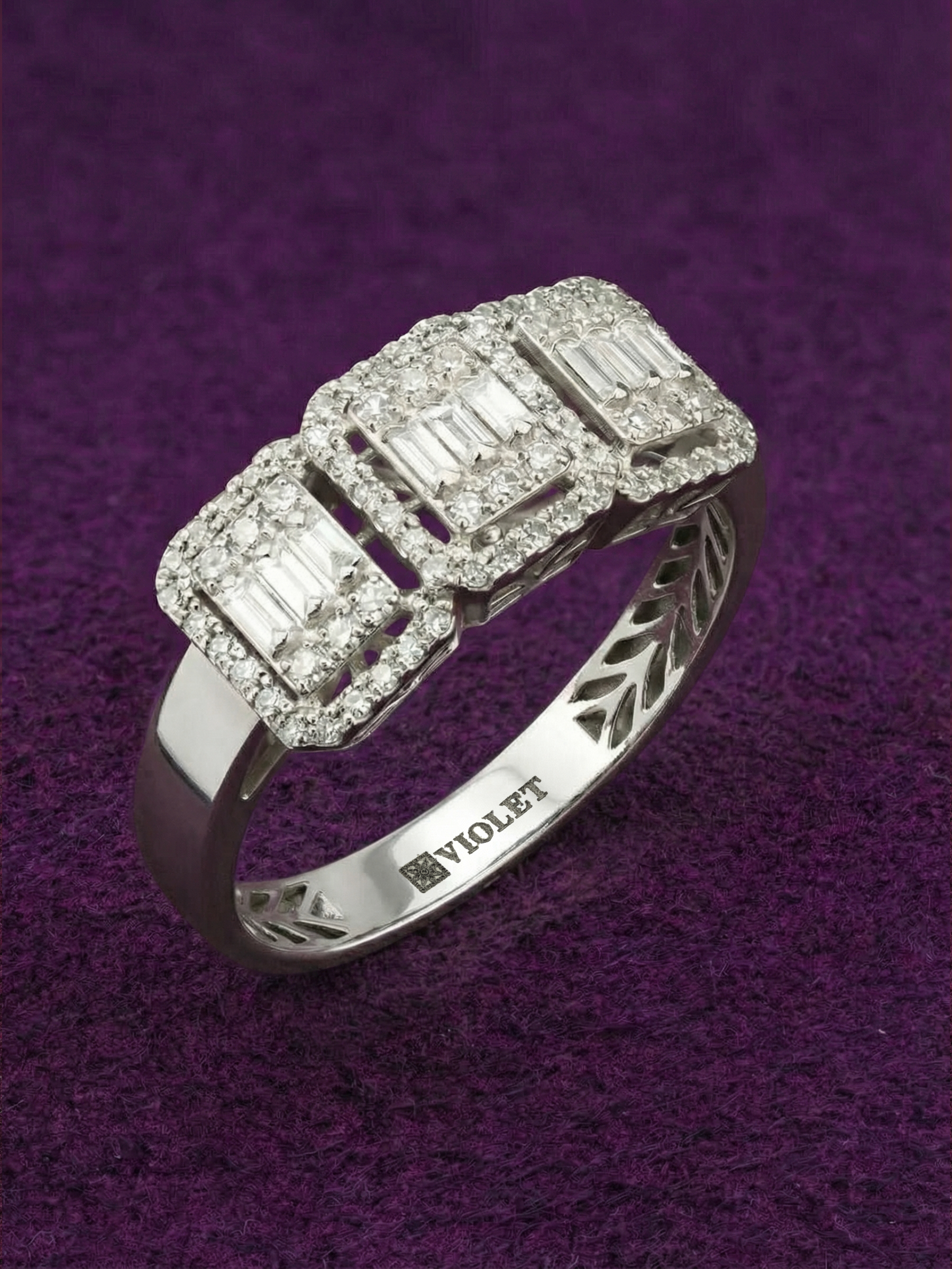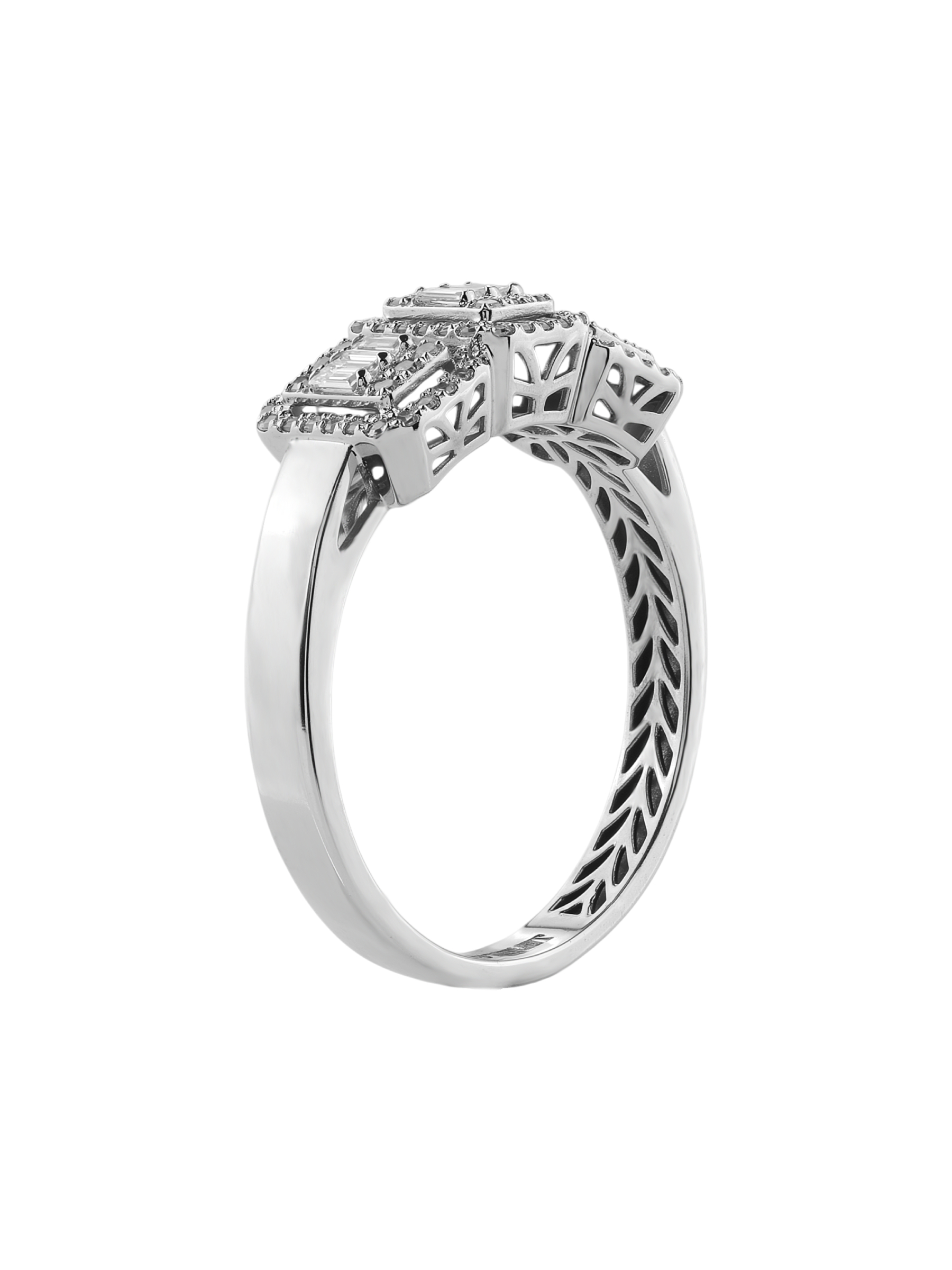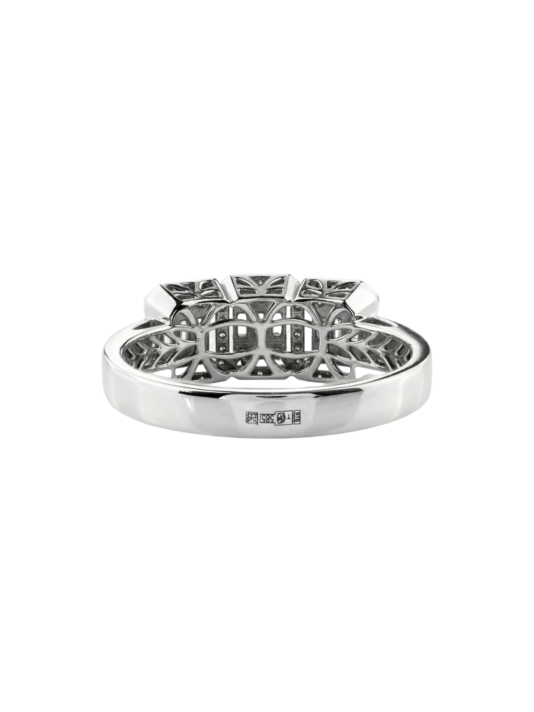 Роскошное кольцо из белого золота 585 пробы станет центральным акцентом вашего образа. Дизайн украшения, представленного в коллекции De Luxe Бриллианты — Baguette, строится на эффектной игре света и строгой геометрии. Мастера использовали сочетание двух типов огранки: благородные бриллианты формы багет создают глубокое сияние в центре композиции, а классические круглые бриллианты обрамляют их, подчеркивая безупречную чистоту линий. Всего в изделии закреплена 81 вставка с белым цветом, что обеспечивает невероятный блеск при любом освещении.